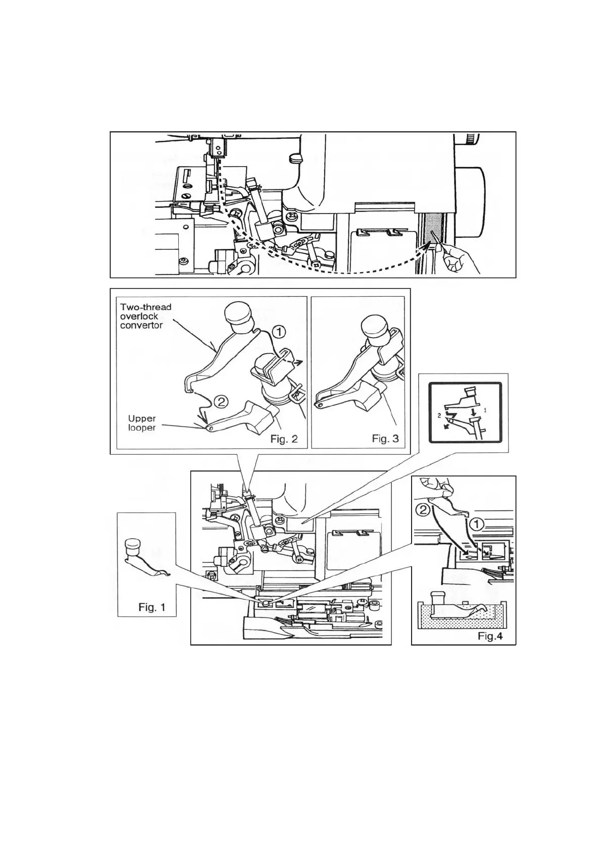 Attach the two-thread convertor onto the upper looper as shown in Fig. 2, Fig.3.