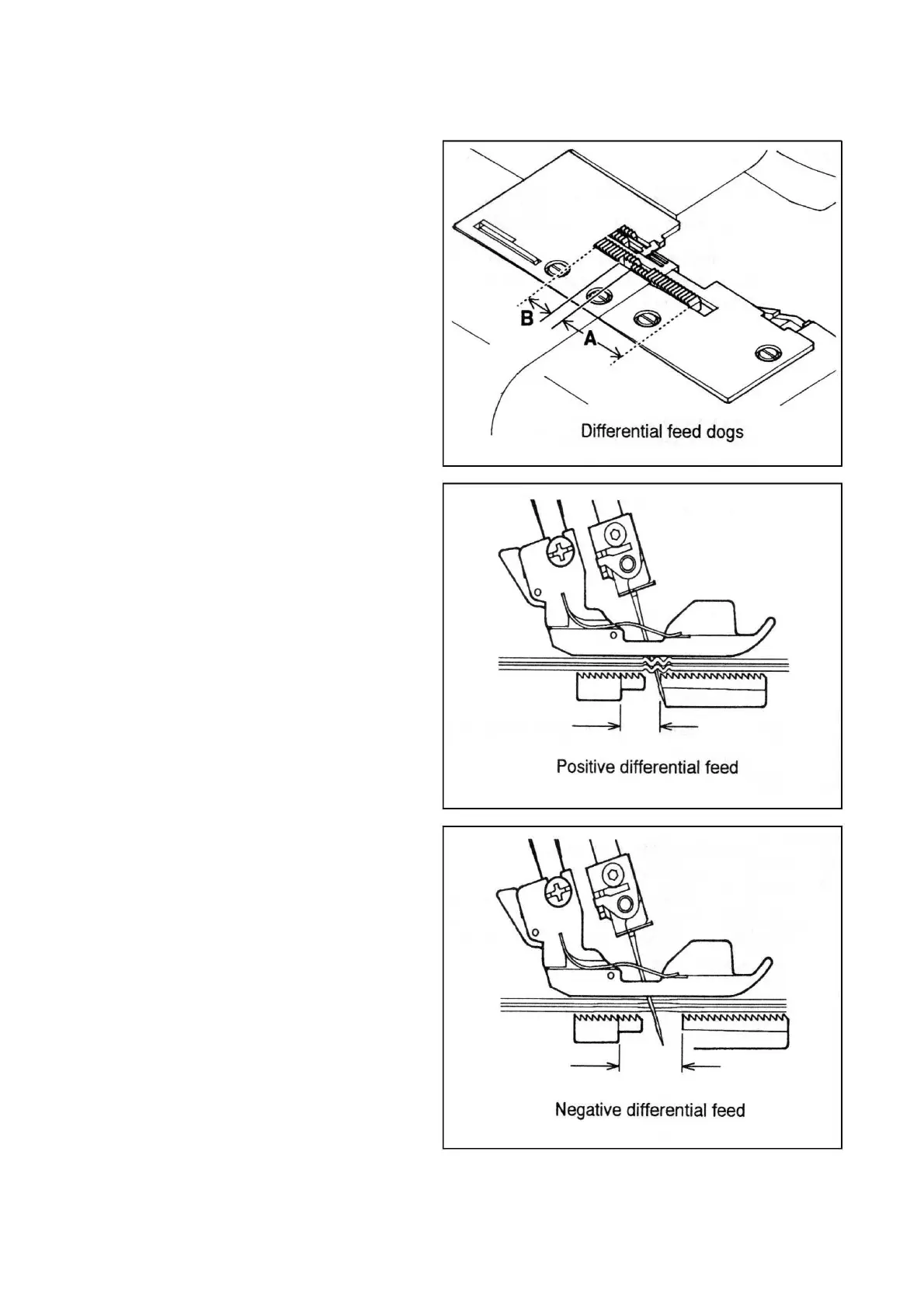 longer stroke than the rear feed dog (B).