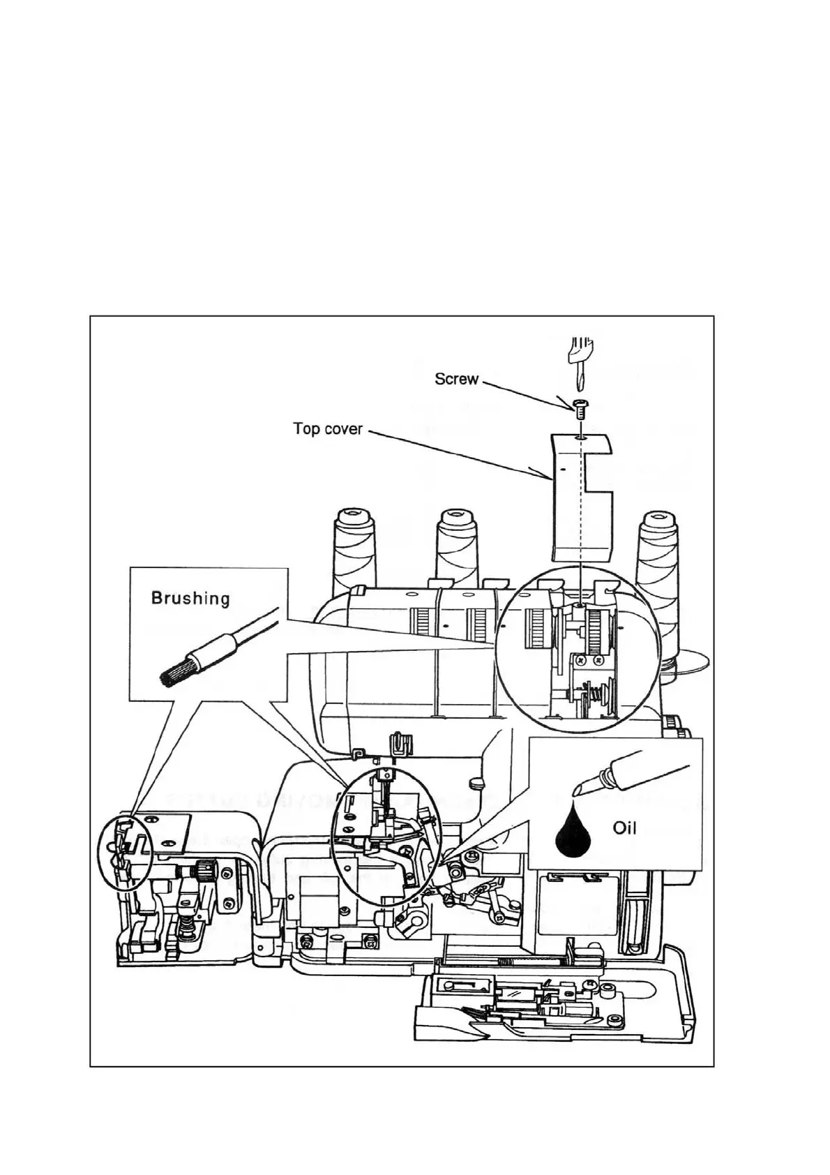 2. Apply a few drops of oil to the points indicated by arrows.
