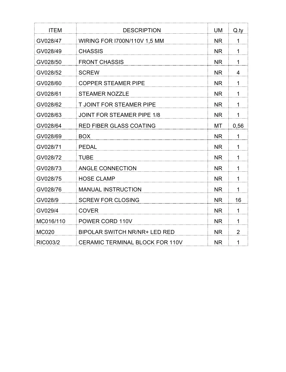 WIRING FOR I700N/110V 1,5 MM