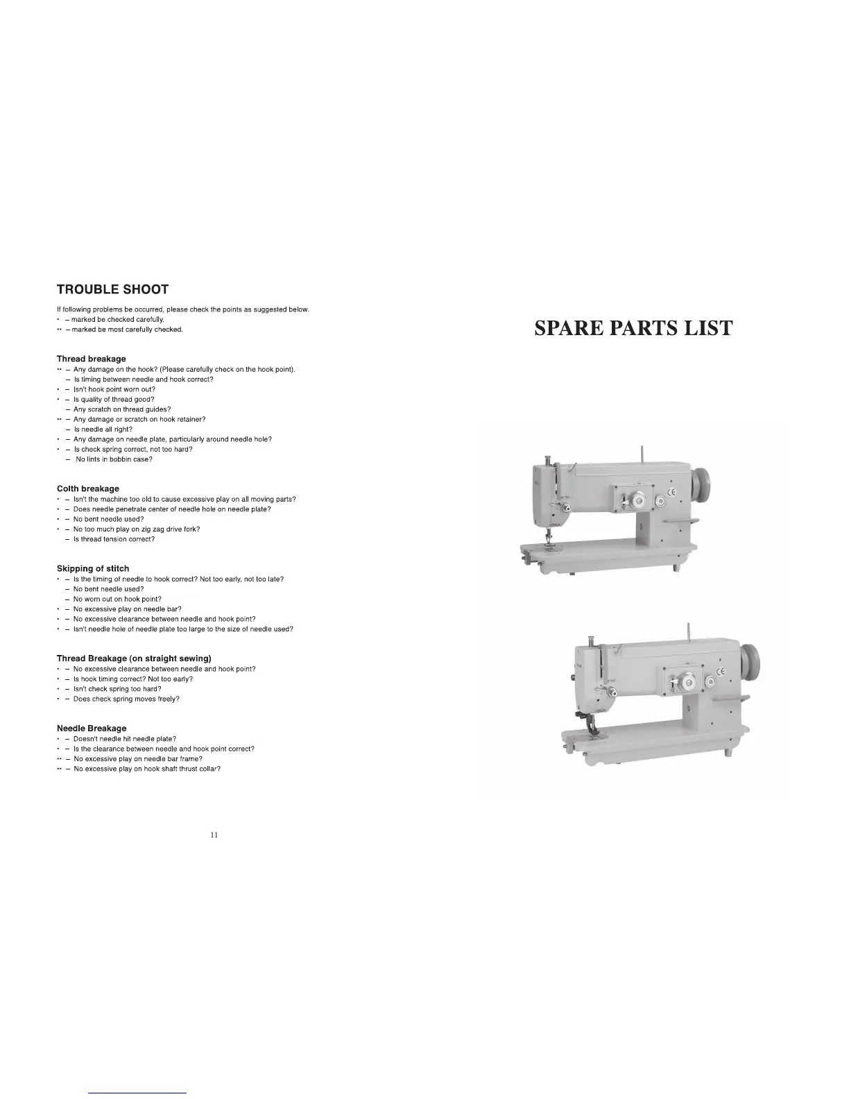 Reliable MSK-146B - Trouble Shoot; Thread Breakage; Colth Breakage; Skipping of Stitch