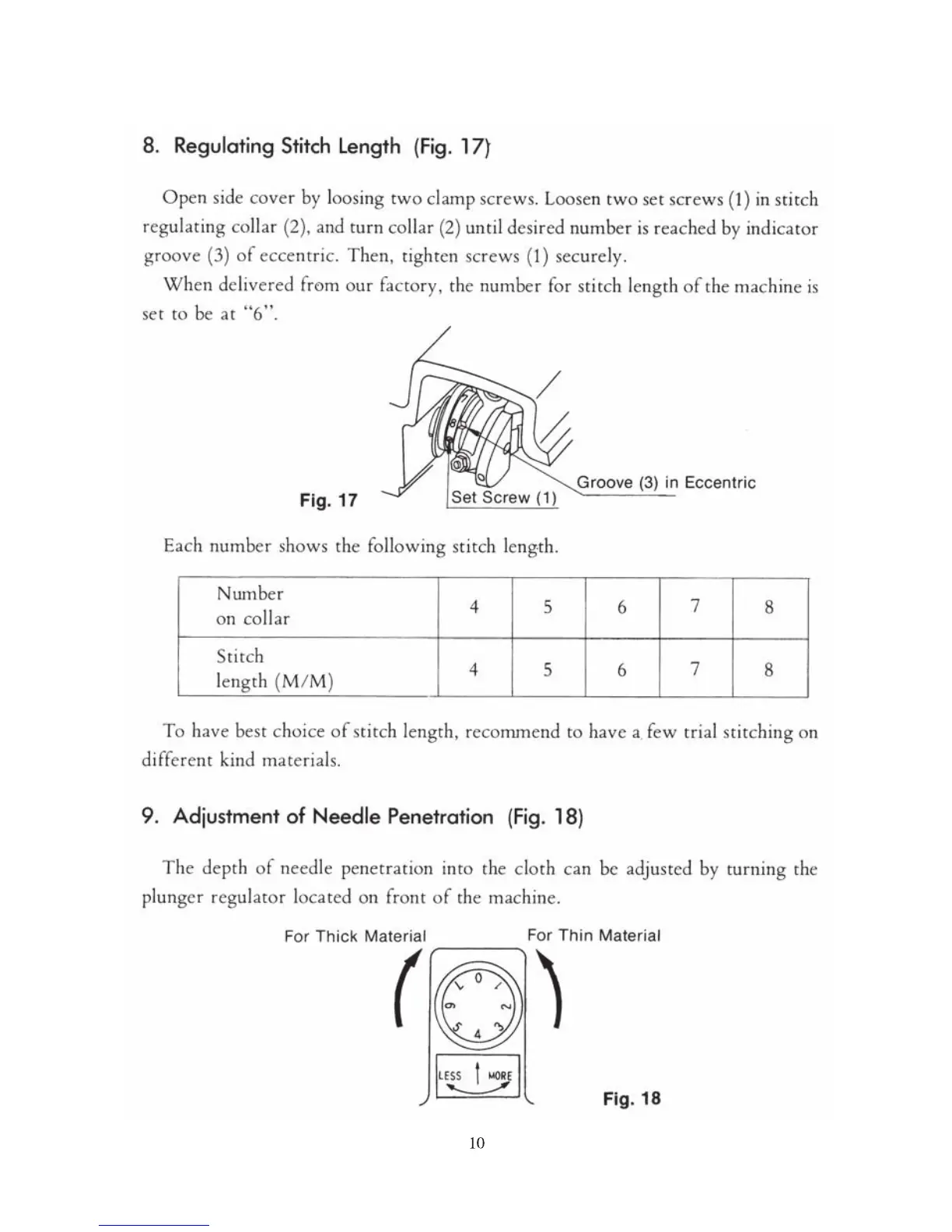 Reliable MSK-588 - Regulating Stitch Length; Adjusting Needle Penetration