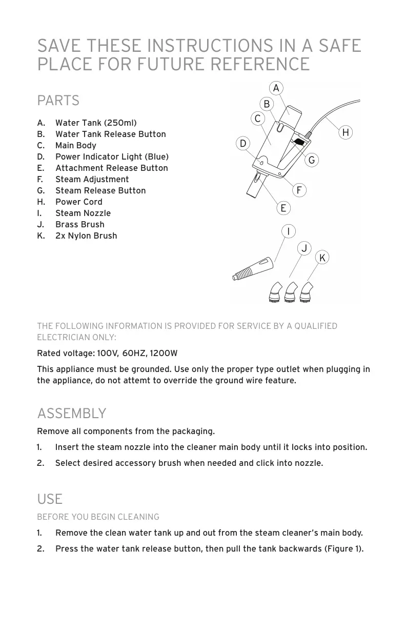 e clean water tank up and out from the steam cleaner’s main body.