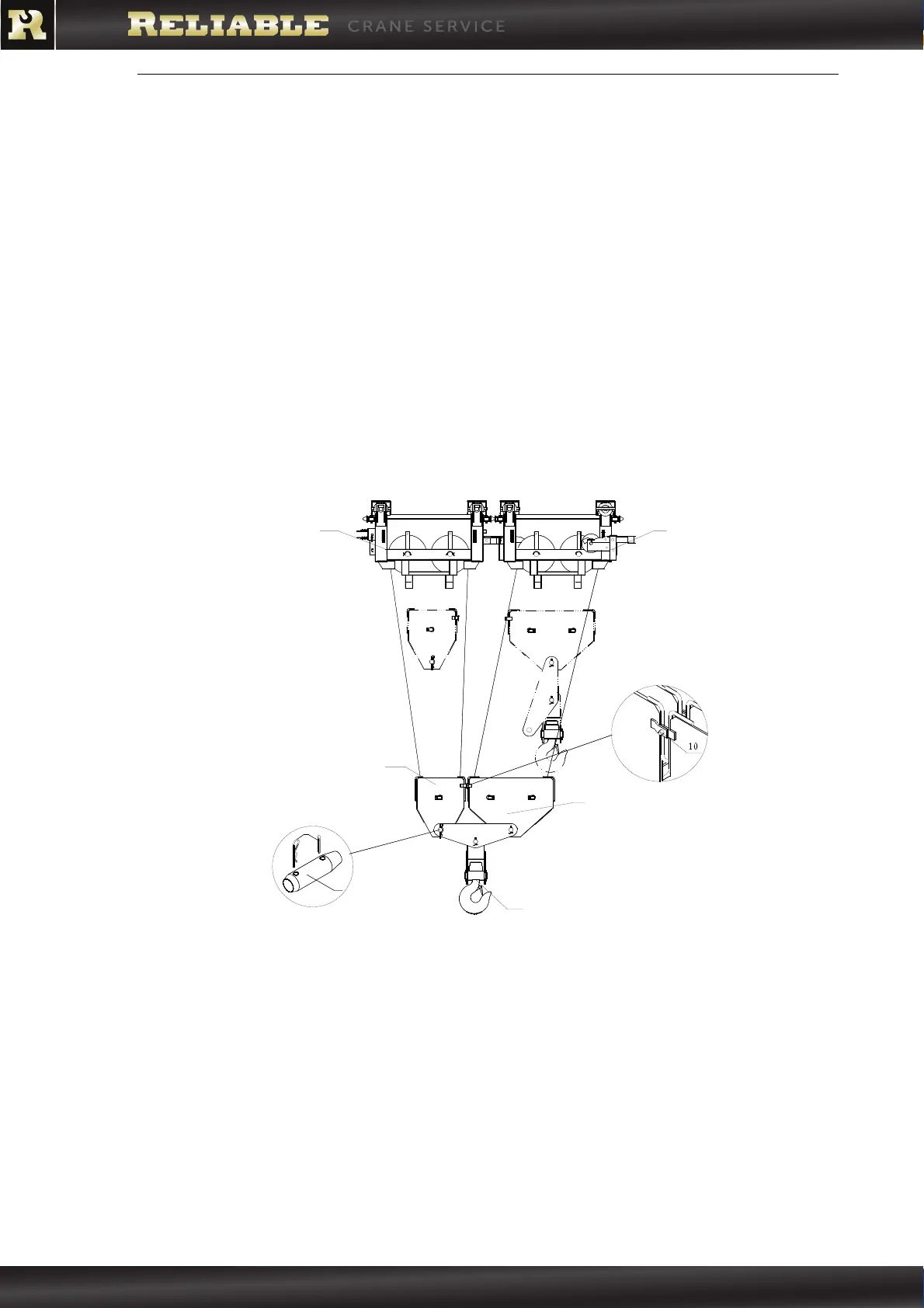 - Connect both hook blocks (4 and 3) by means of the fittings (8, 9 and