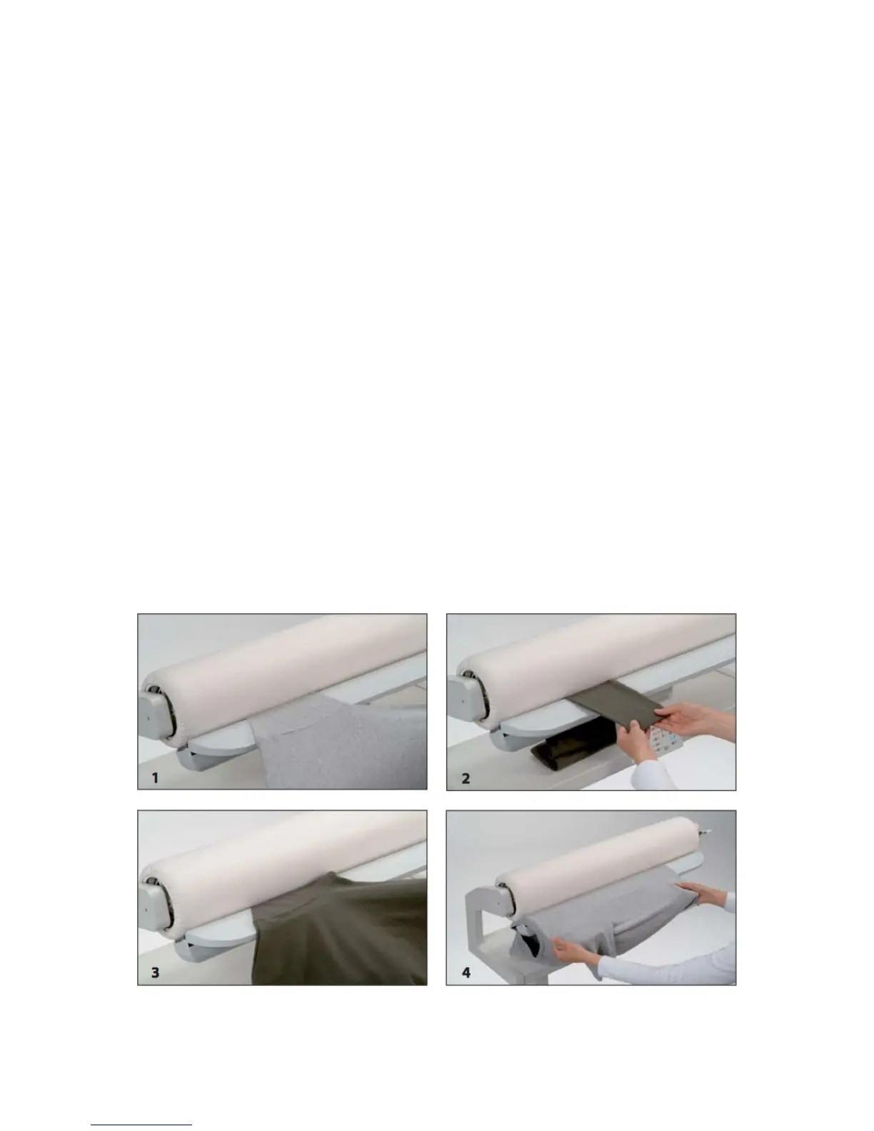 de las costura paralelo al rodillo) y plánchela desde el centro hasta la costura de la