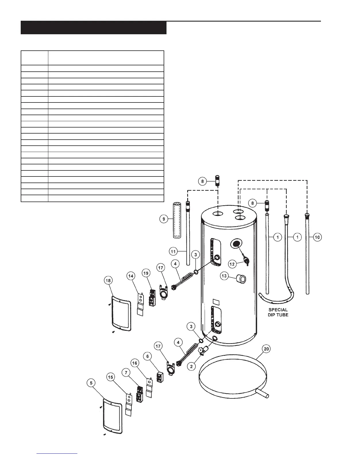 dip tube (to retard a build-up of dissolved solids) and is