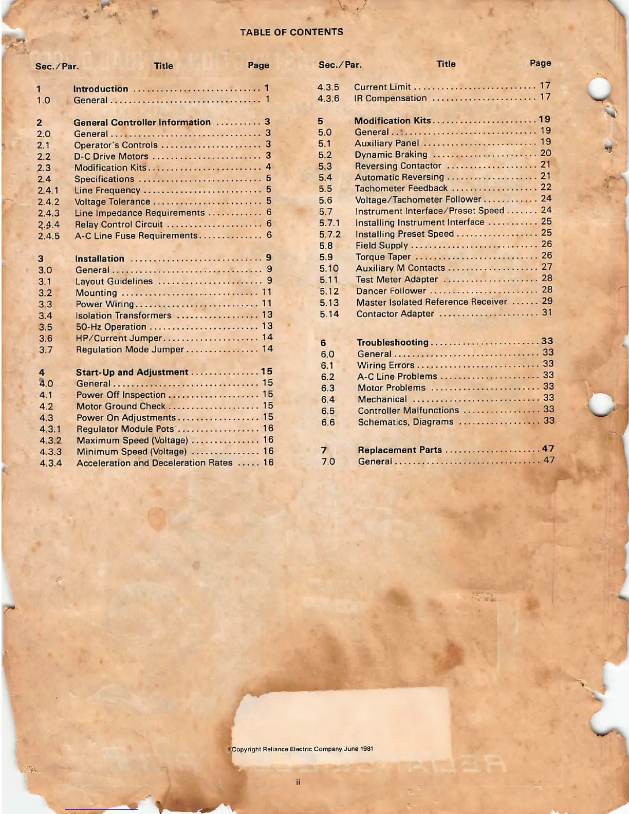 ~Copyrigh t Reliance Electric Company June 1981
