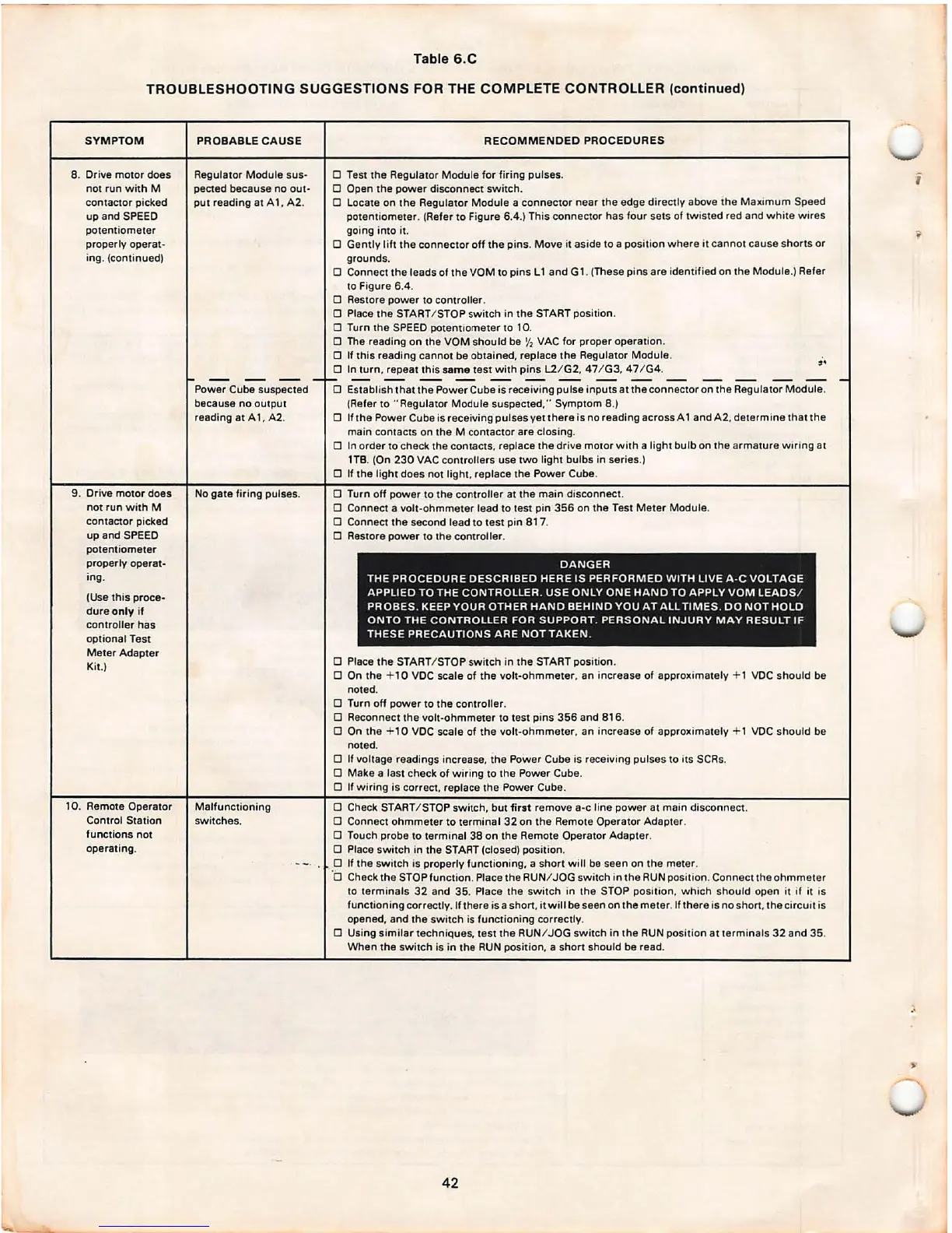 TROUBLESHOOTING SUGGESTIONS FOR THE COMPLETE CONTROLLER (continued)
