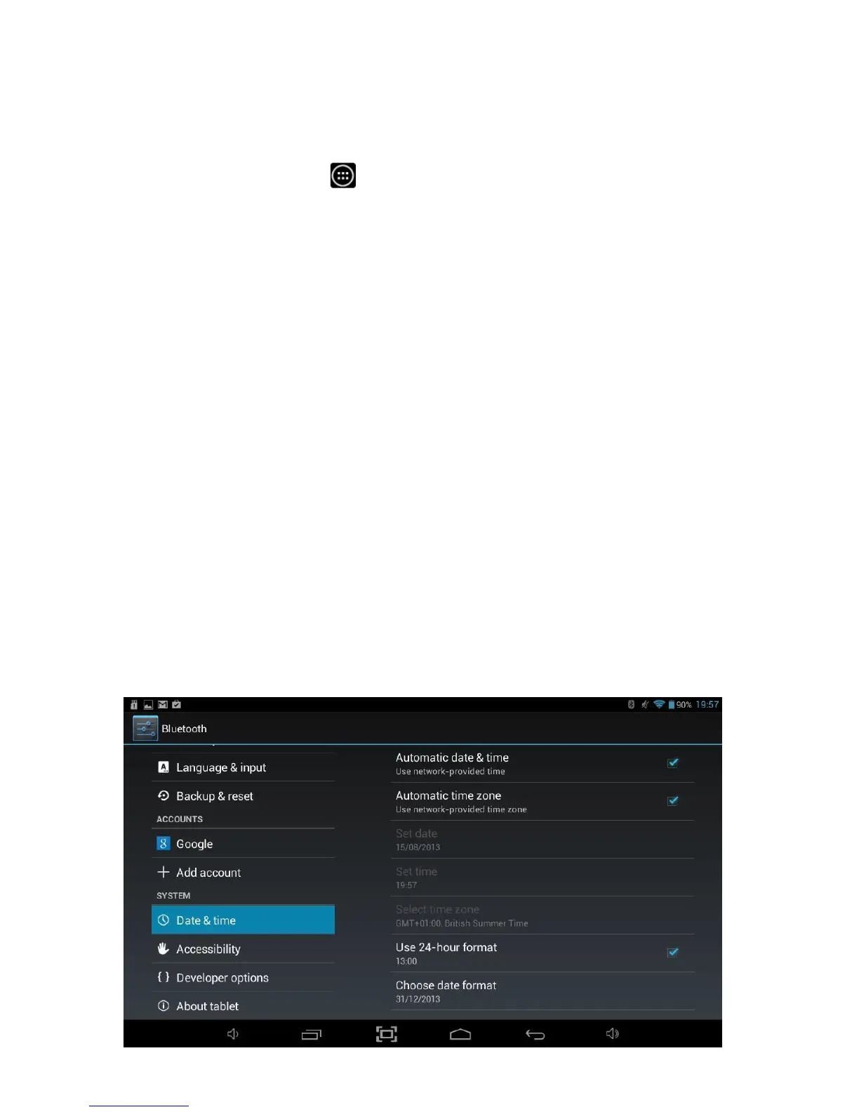 To access Date & time settings, you will need to access the settings menu. Tap the