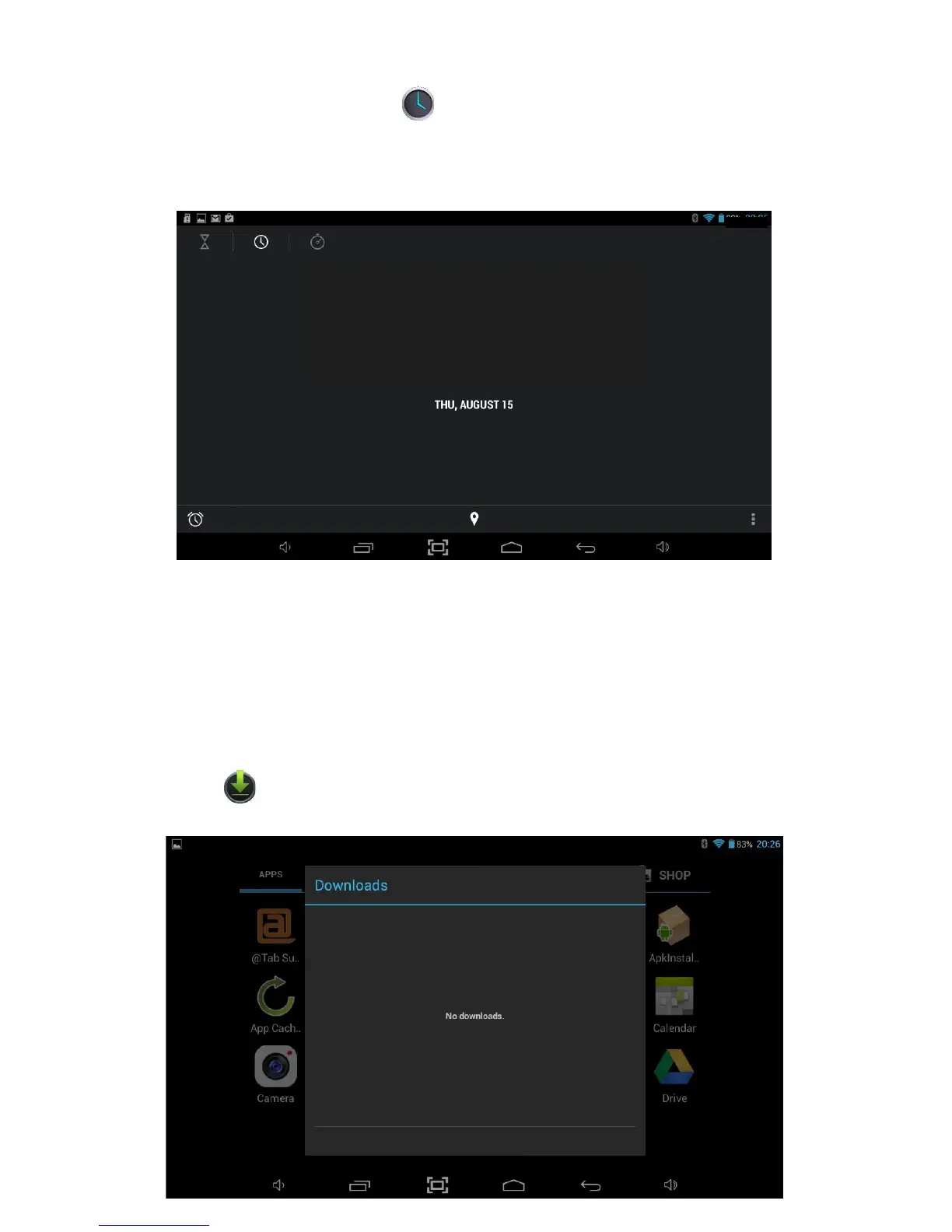 from within Applications Launcher. The Tablet will show a large clock on screen and