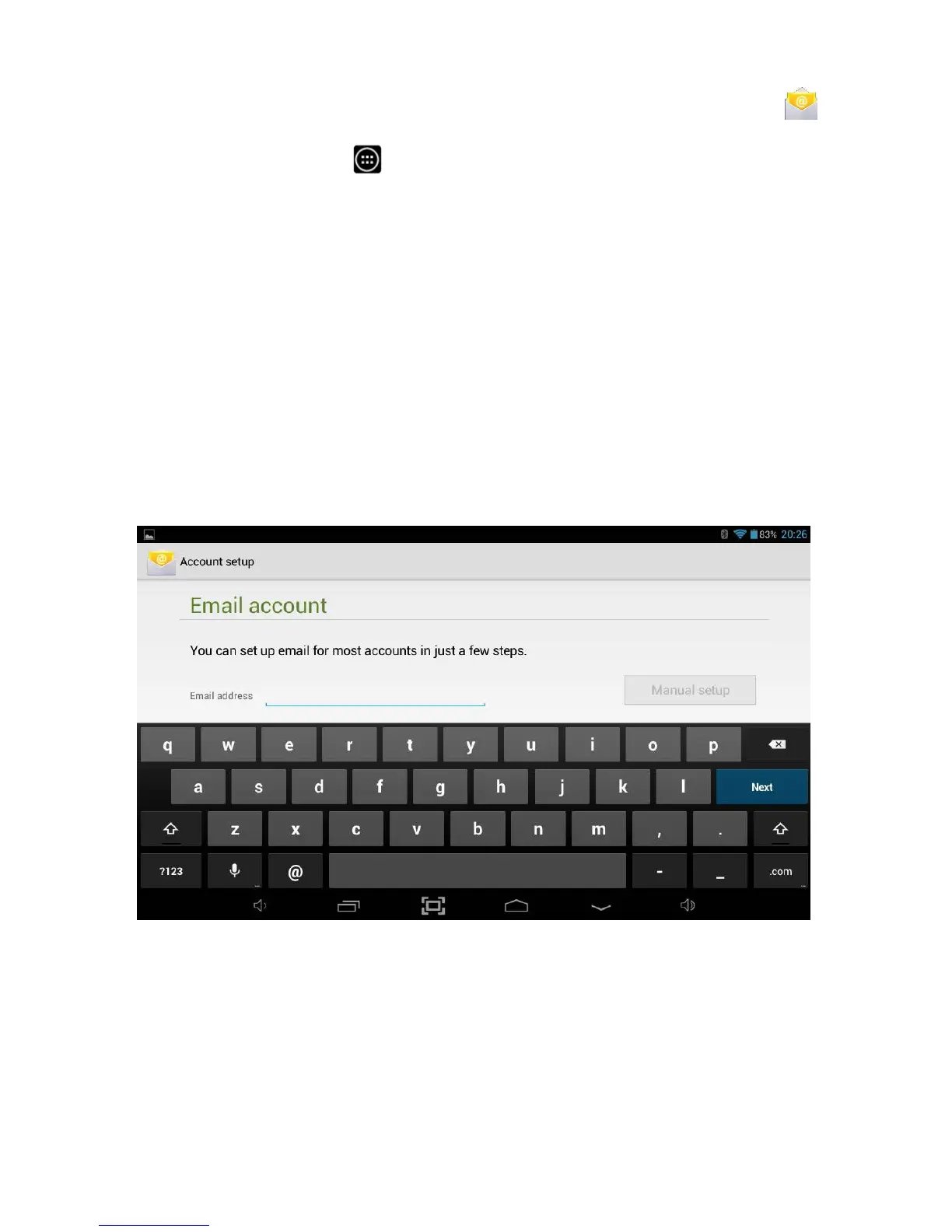 Note: The Email application cannot be used to connect to Google Mail, please use the
