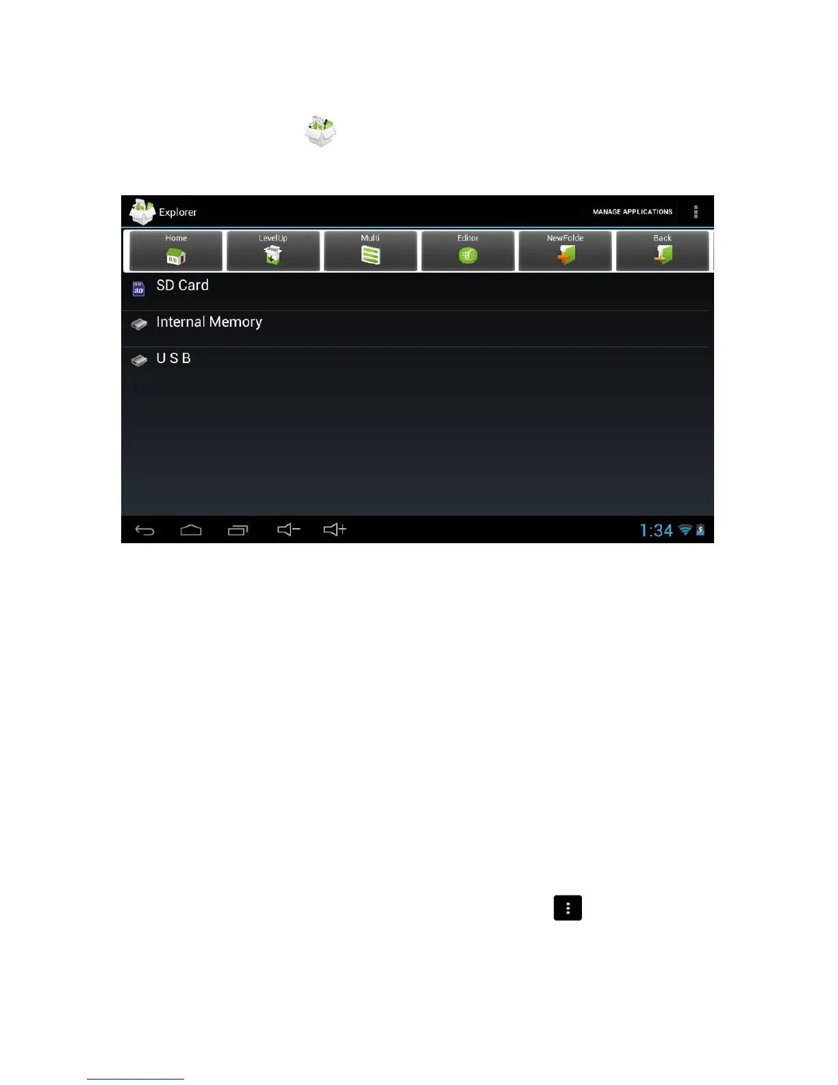 highest level of your Tablet’s internal storage. You can navigate through folders just by