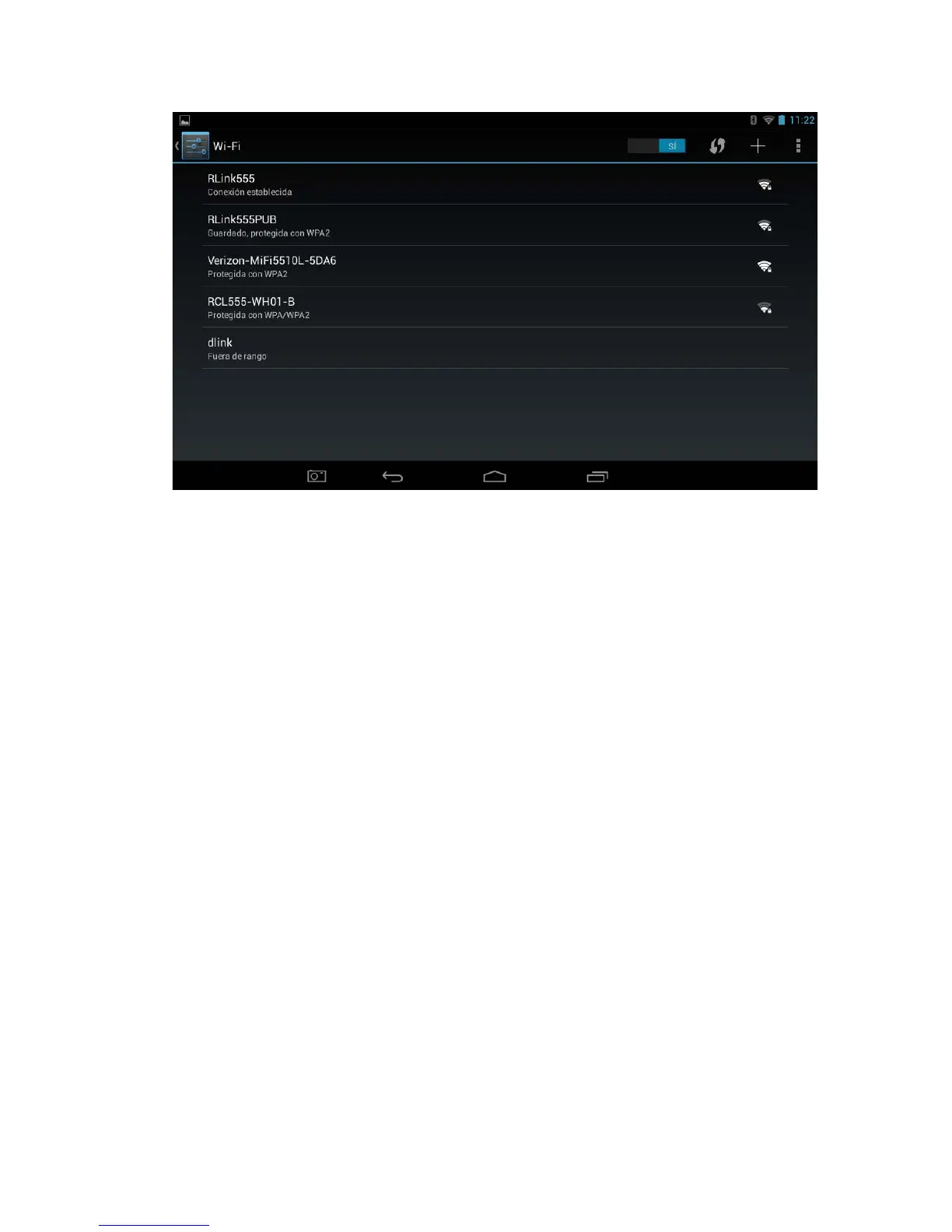 2. Una vez que se haya encendido el Wi-Fi, la Tablet escaneará automáticamente en busca de redes Wi-Fi