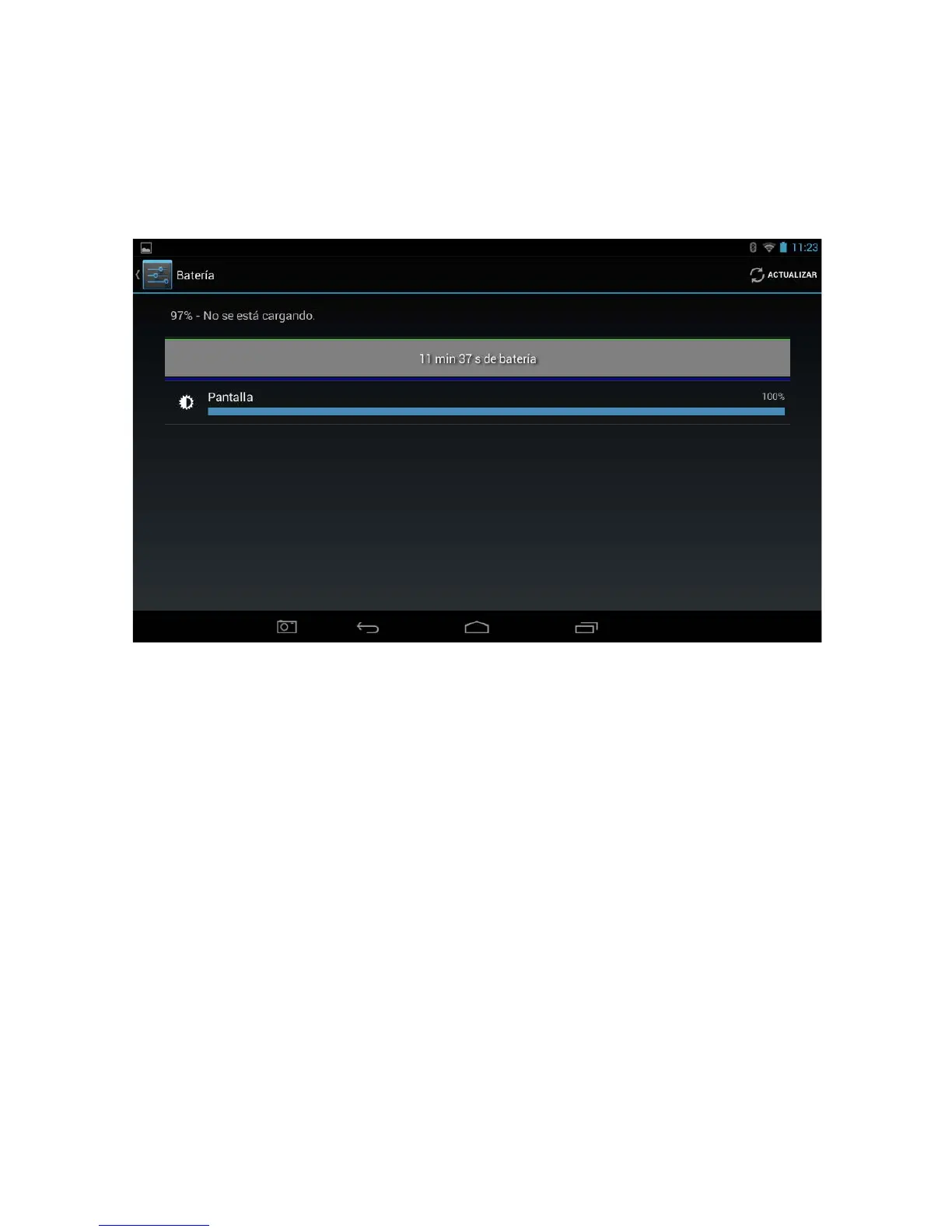 La opción Batería muestra la carga actual de la batería, cómo se ha usado la batería durante el periodo de tiempo que aparece y