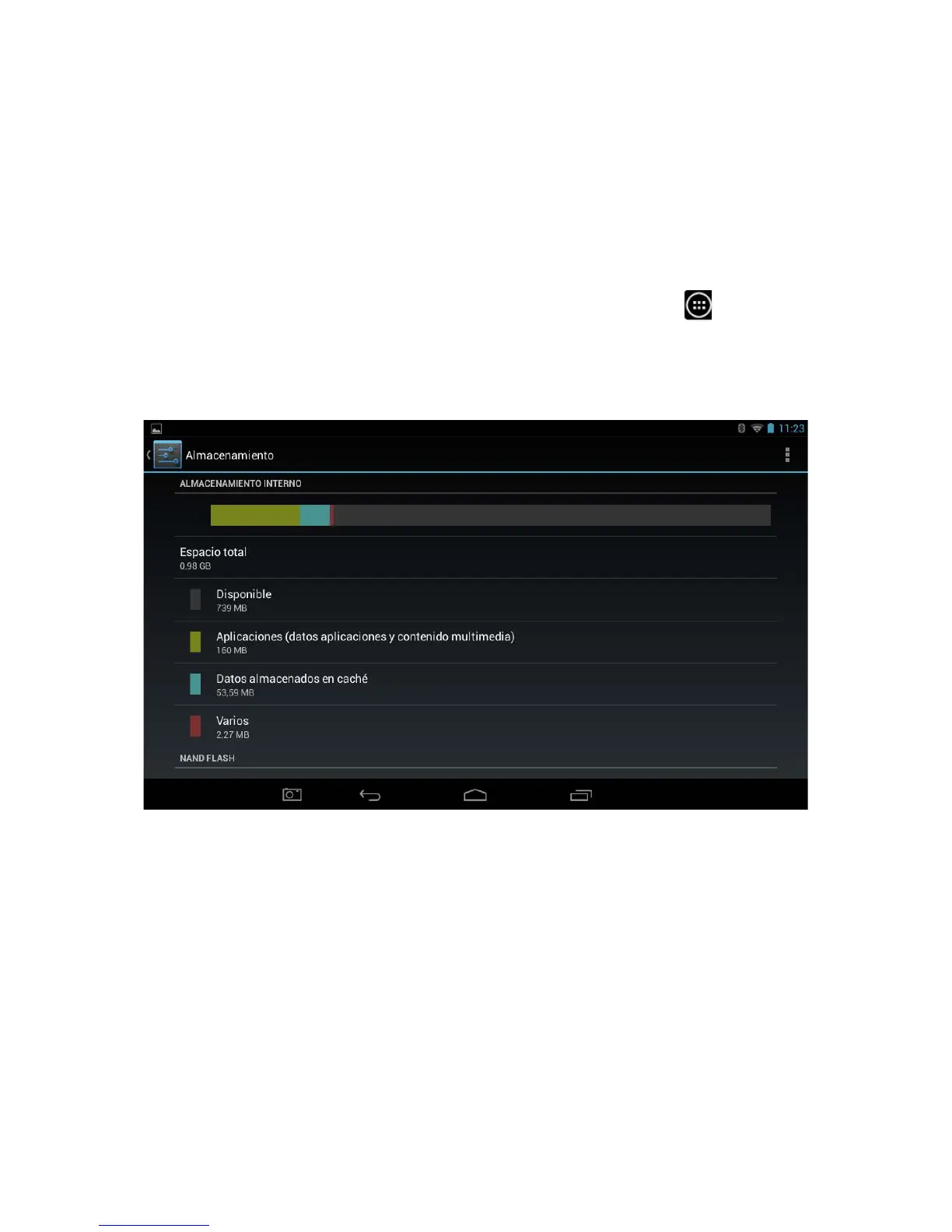 usuarios, pero la segunda entrada para Almacenamiento interno muestra cuánto almacenamiento es ocupado por
