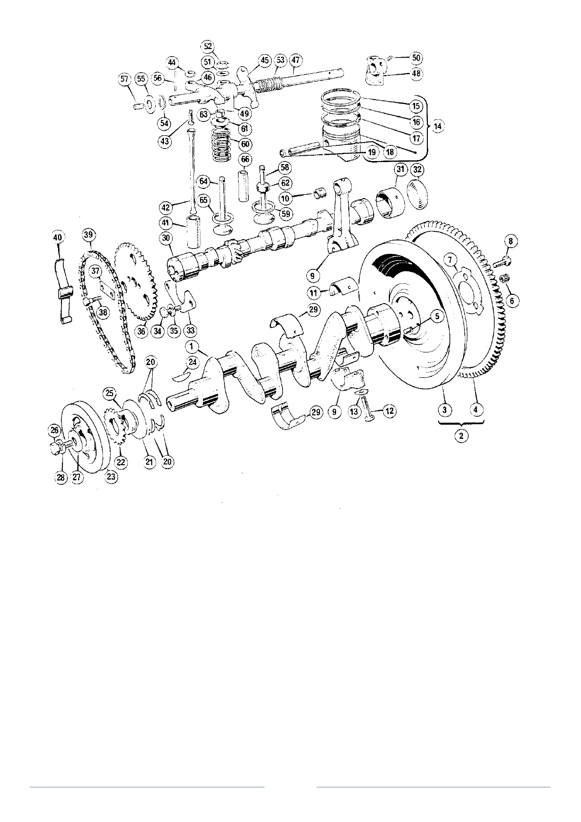 20. Crankshaft thrust washer 42. Push rod 64. Exhaust valve