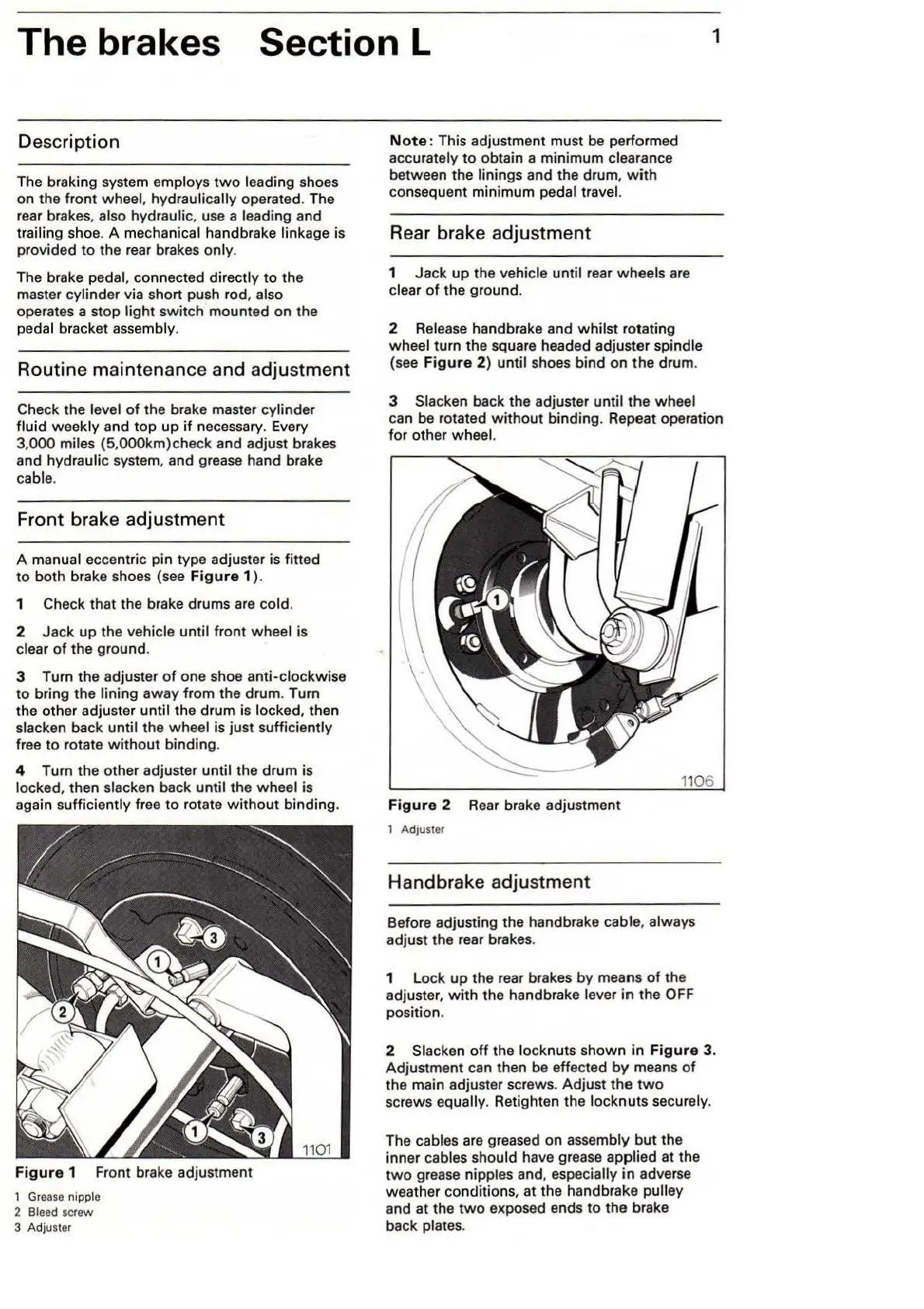 1 Front brake adjustment