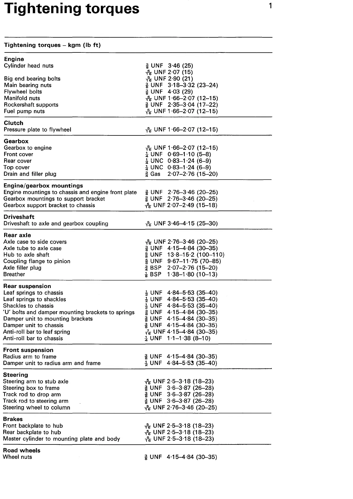 Tightening torques