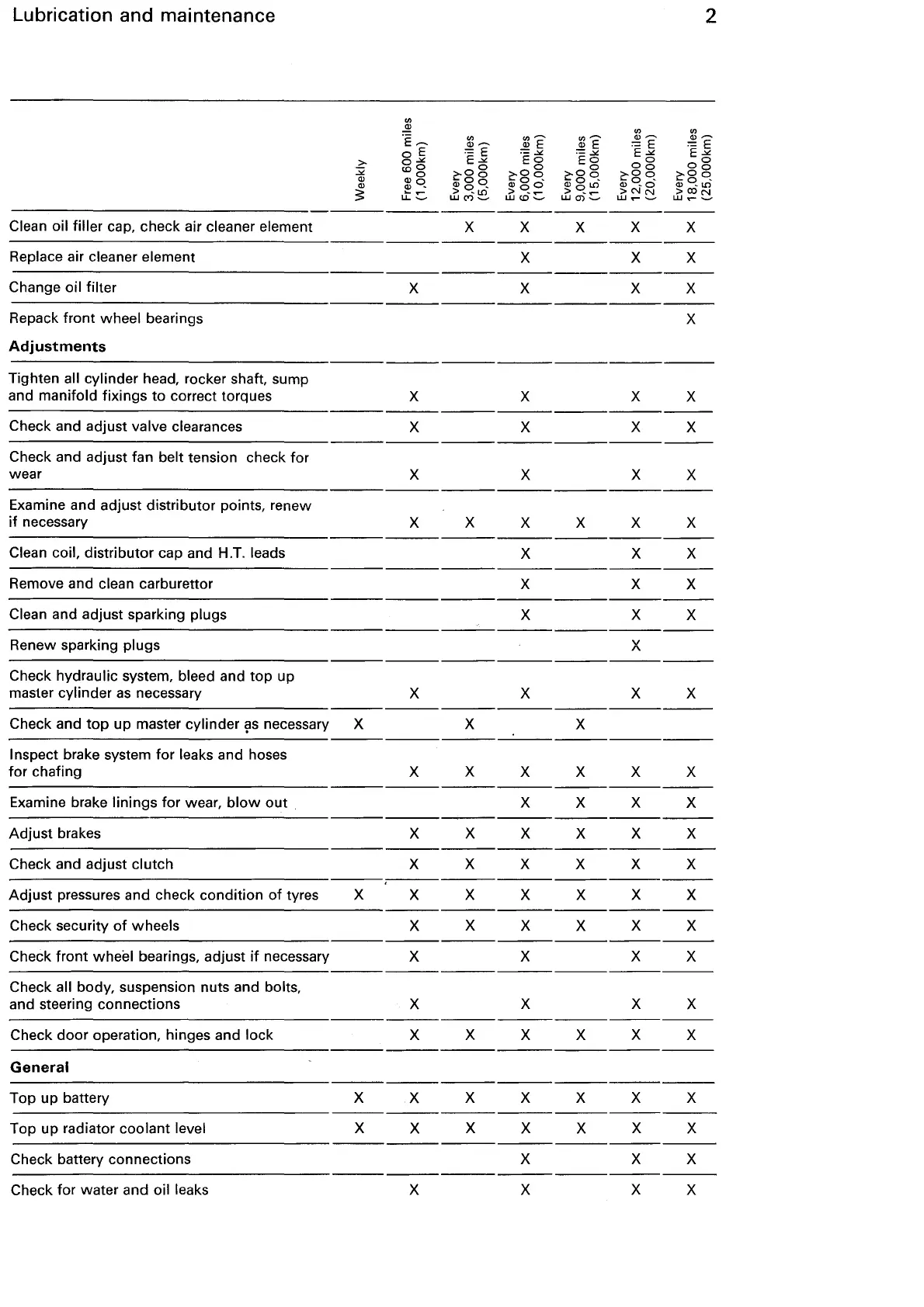 and oil leaks X X X X