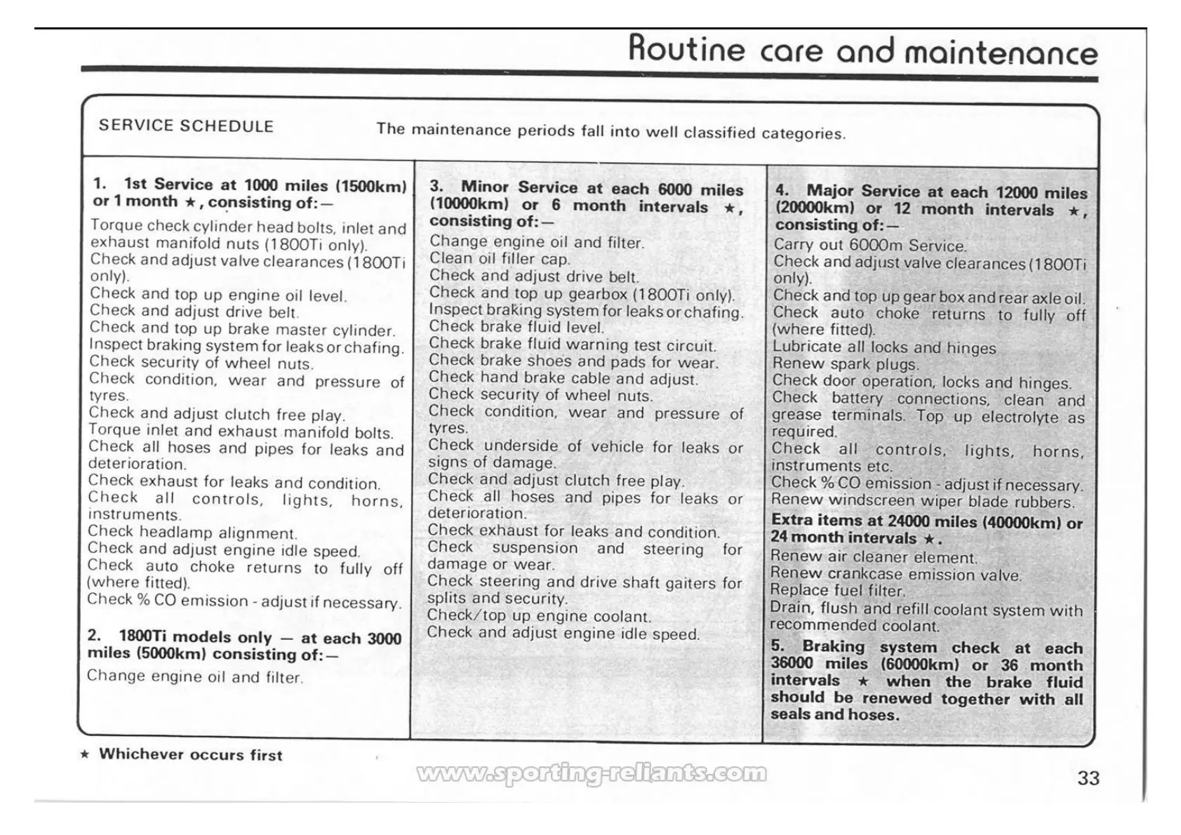 Reliant Scimitar SS1 - Scheduled Maintenance Intervals
