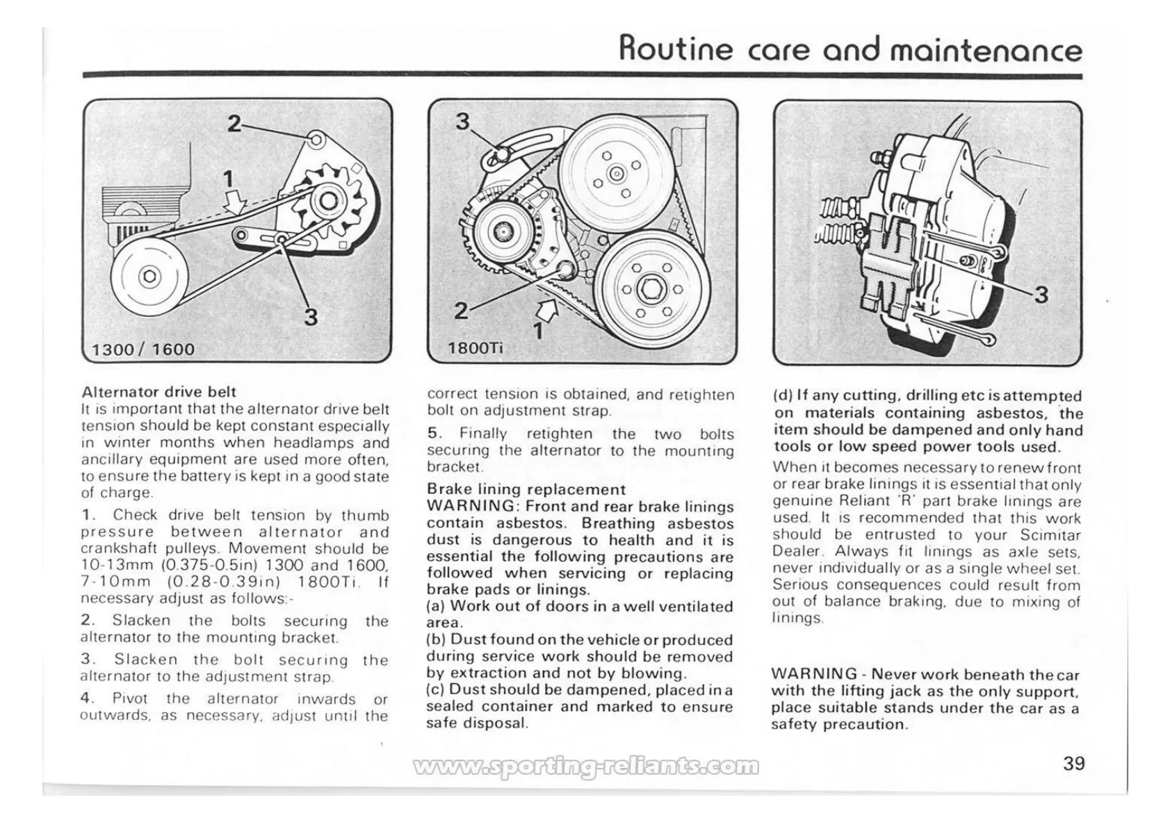 Reliant Scimitar SS1 - Alternator Belt Adjustment & Brake Linings