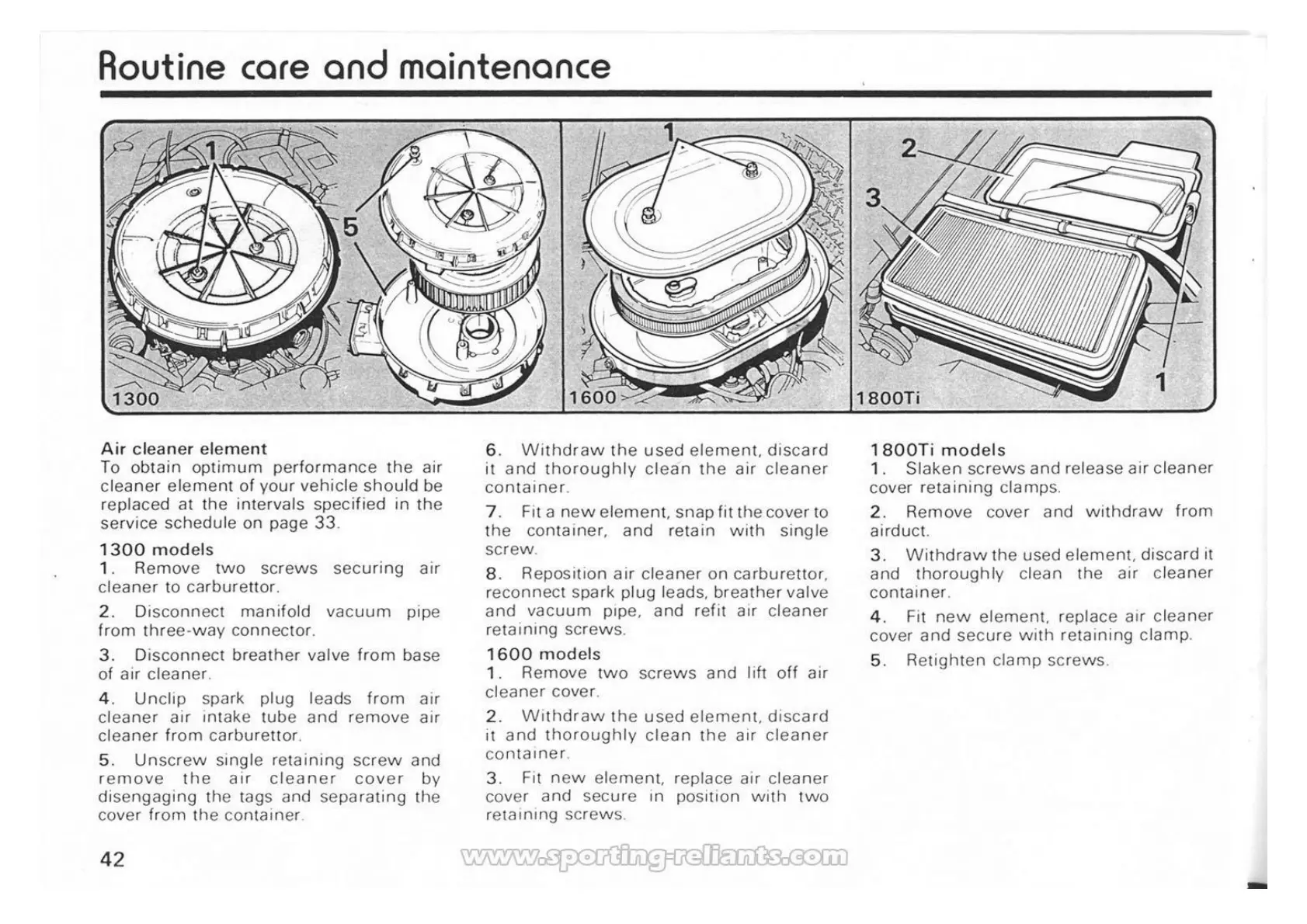 Reliant Scimitar SS1 - Air Cleaner Element Replacement