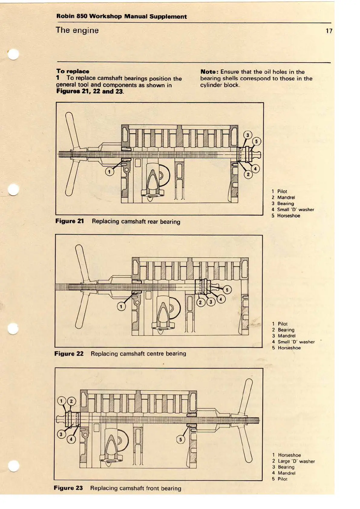 1 To replace camshaft bearings position the