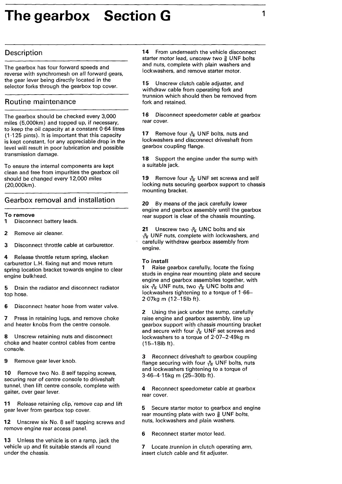 1 Raise gearbox carefully, locate the fixing
