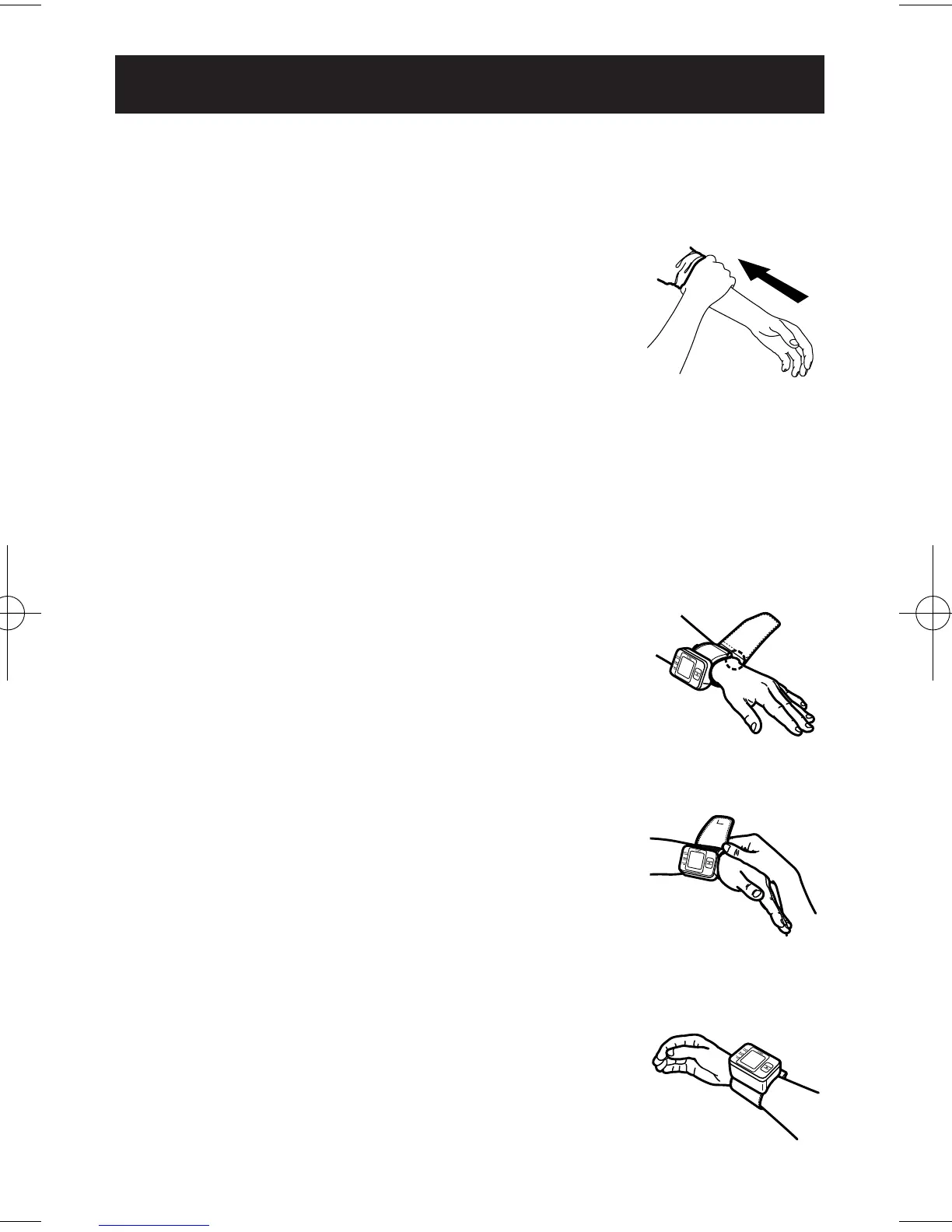 No aplique sobre la ropa. Coloque el brazalete sobre la muñeca
