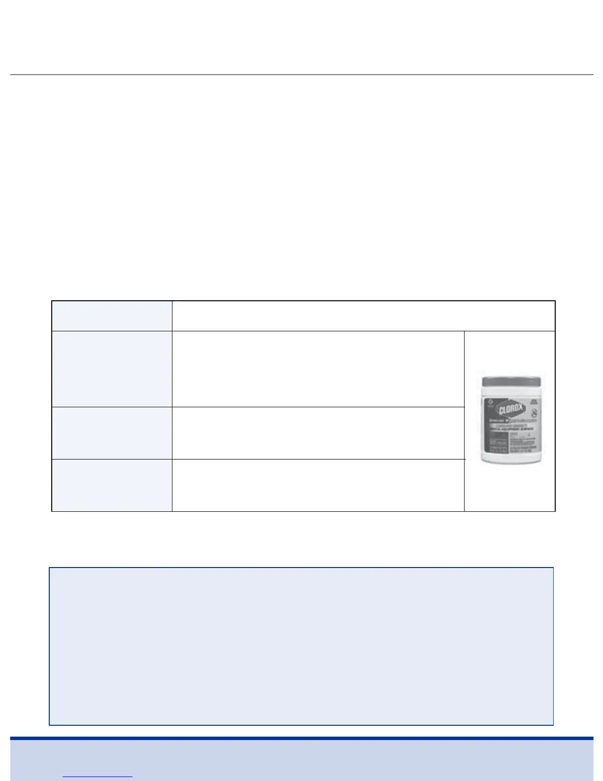 desinfectante, póngase en contacto con la empresa Clorox® o visite
