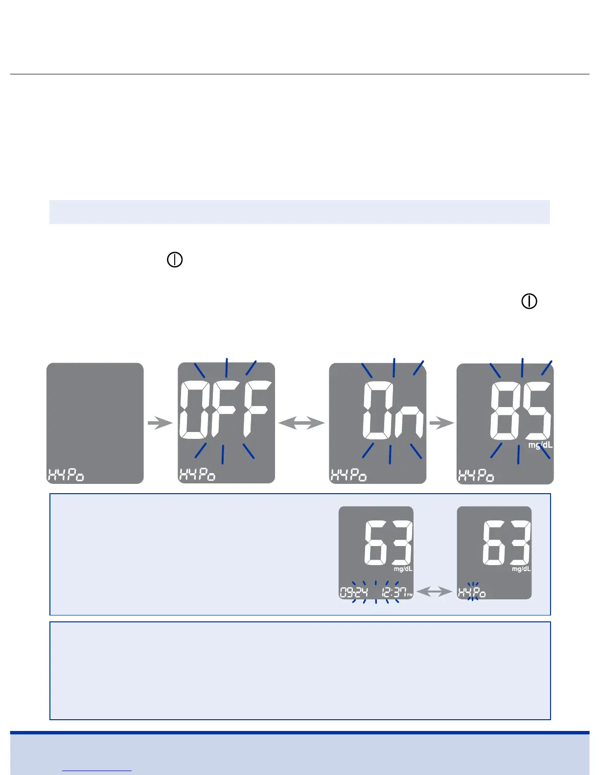 (possible low blood sugar) ‘On’ or ‘OFF’ and select the desired
