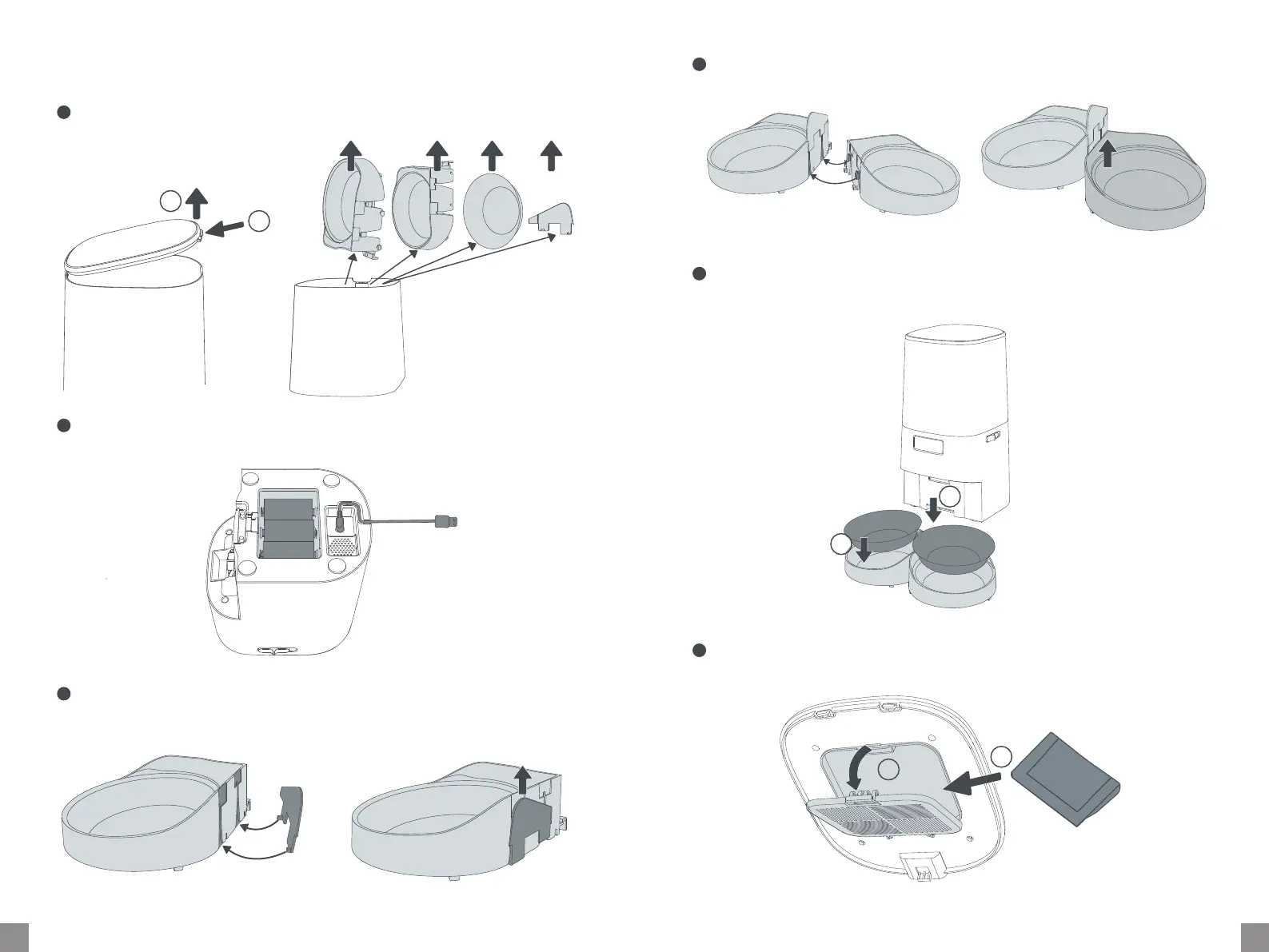 Platzieren Sie die Schüsseln in den Schüsselhaltern. Heben Sie den Futterspender an