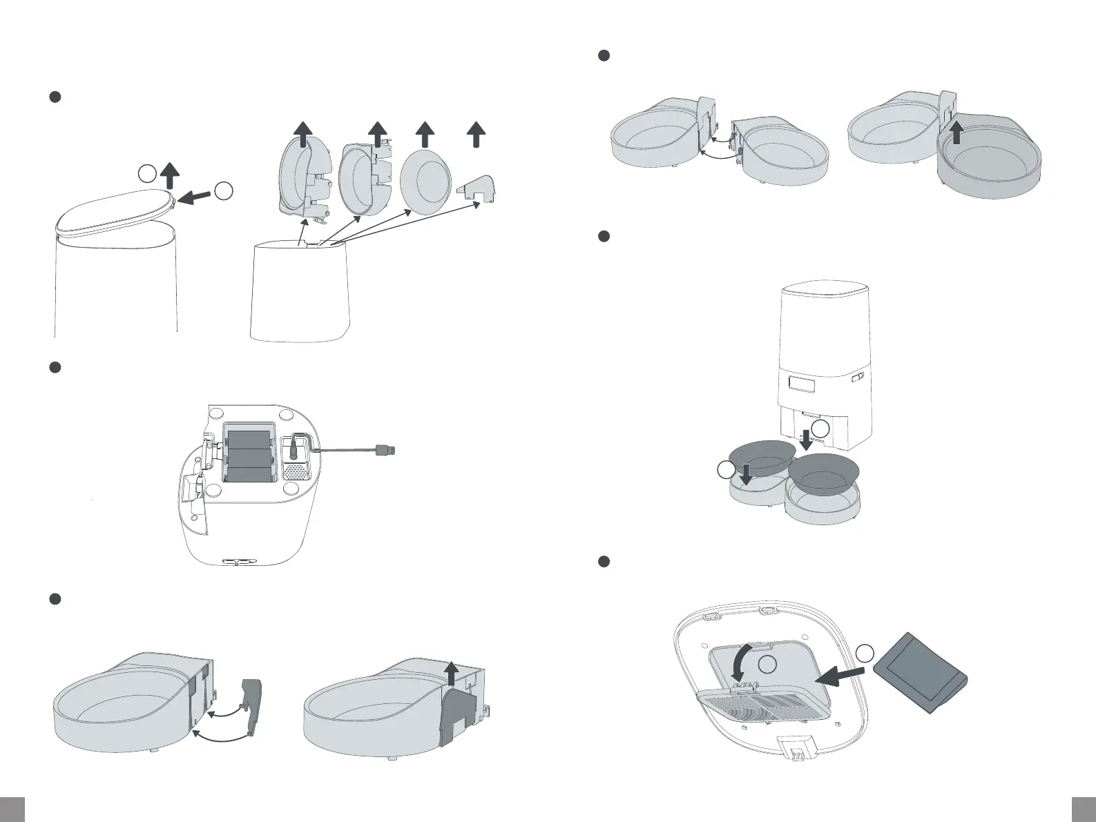 Place bowls in bowl holders. Lift feeder and attach the bowls to the notch underneath