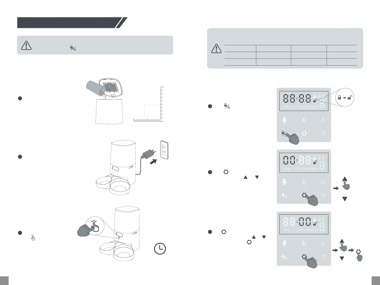 •Make sure that pet feeder is properly installed before lling the food tank.