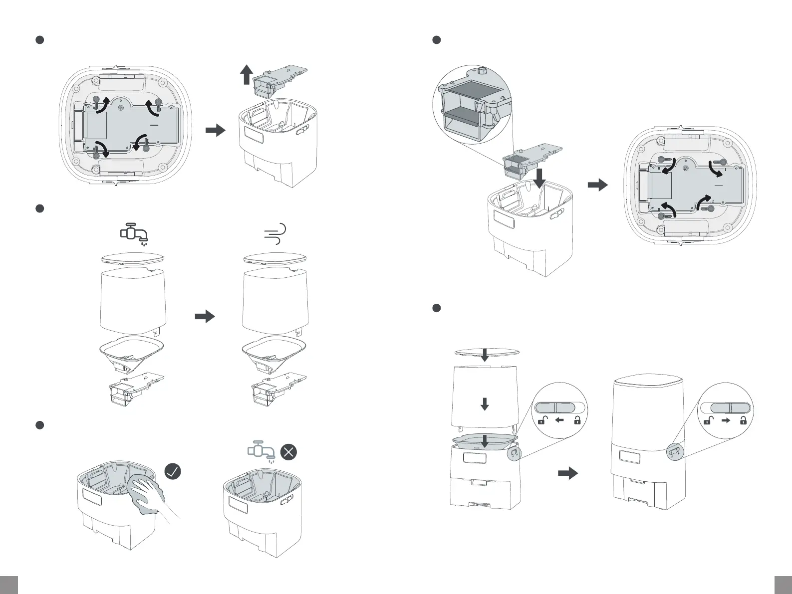 Rinse clean the lid, tank, tank base and food slider. D thoroughly before reassembling.
