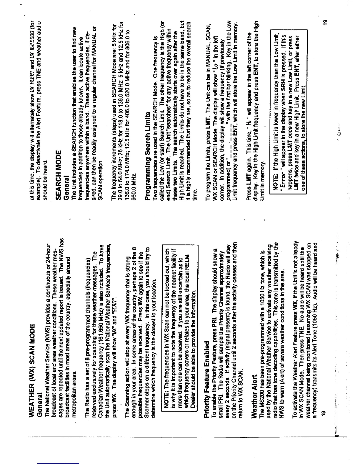 RELM MS200 - Search Mode; General; Programming Search Limits