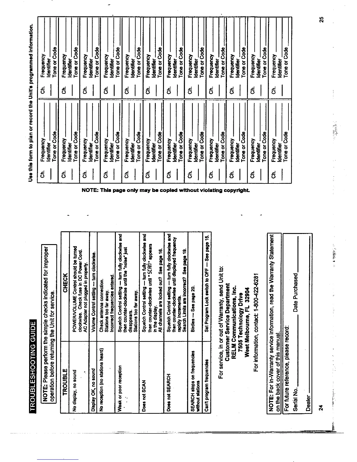 RELM MS200 - TROUBLESHOOTING GUIDE
