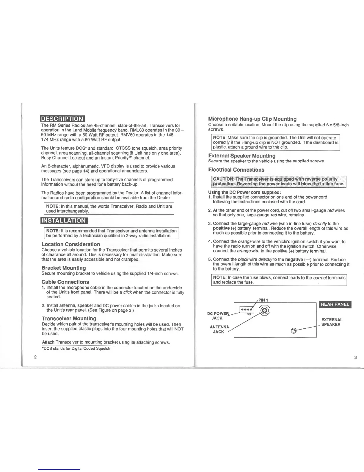 RELM RM Series - Description; Installation; Location Consideration; Bracket Mounting