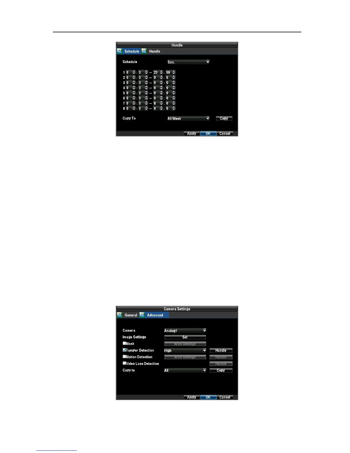 1. Select Advanced tab in camera settings interface to configure video tampering alarm for the