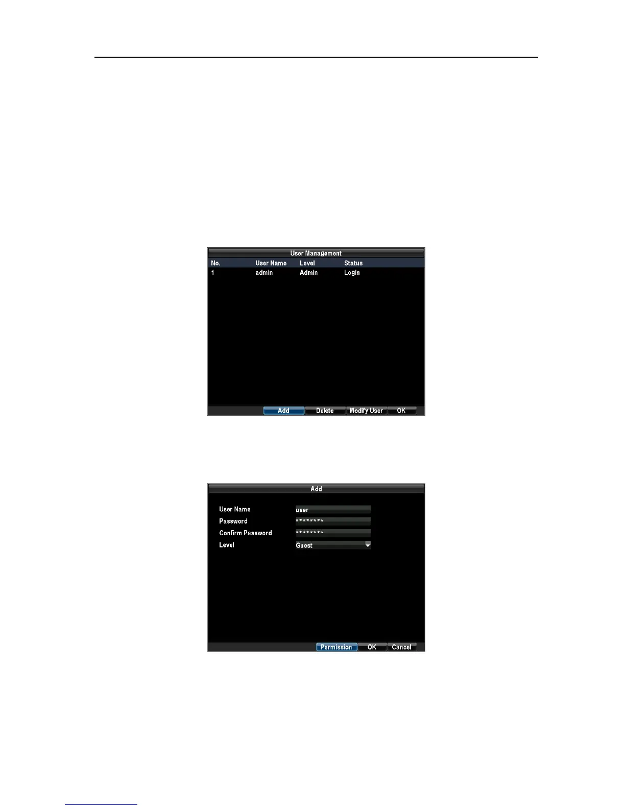 1.Enter the User Settings menu by clicking Menu→Configuration→User Management.