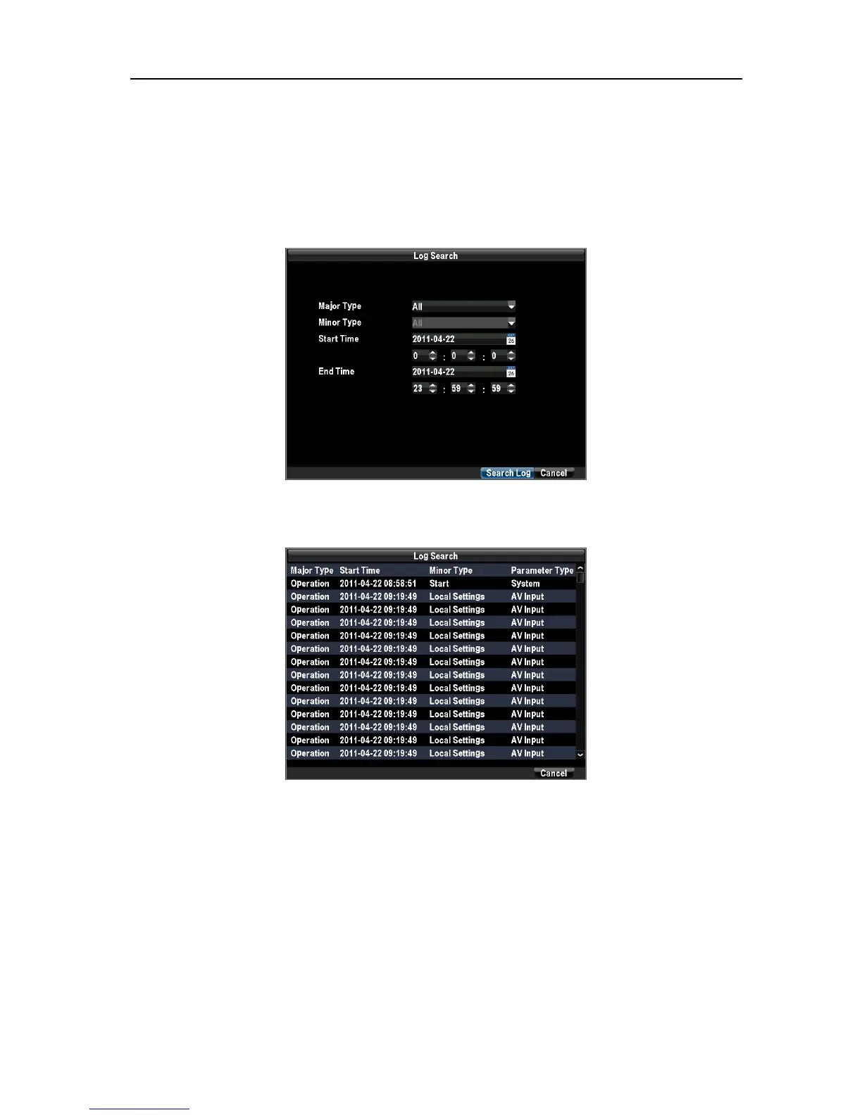 1. Enter the Log Search menu by clicking Menu → Maintenance→ Log Search.
