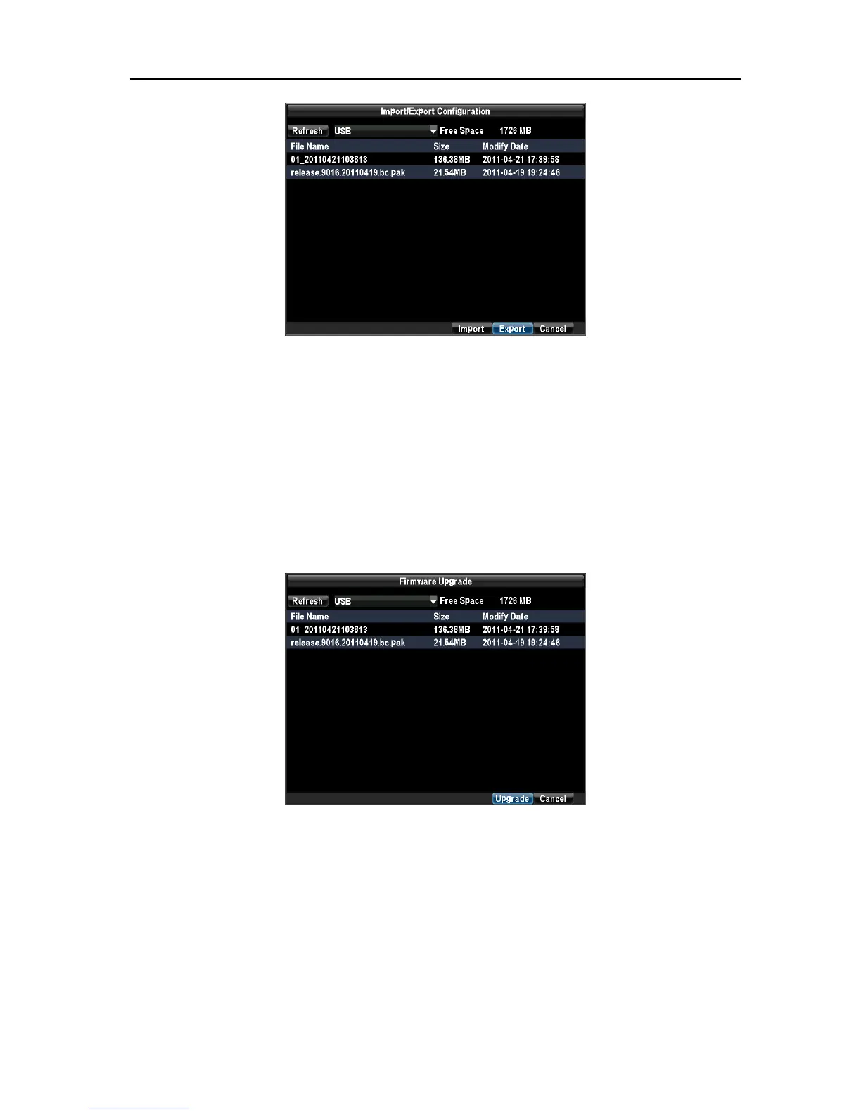 DVR. To import a configuration file, select the file from the USB device and click the Import button. After