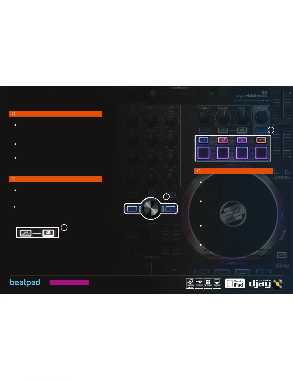 Activa JOG SCRATCH MODE para la simulación del vinilo y JOG