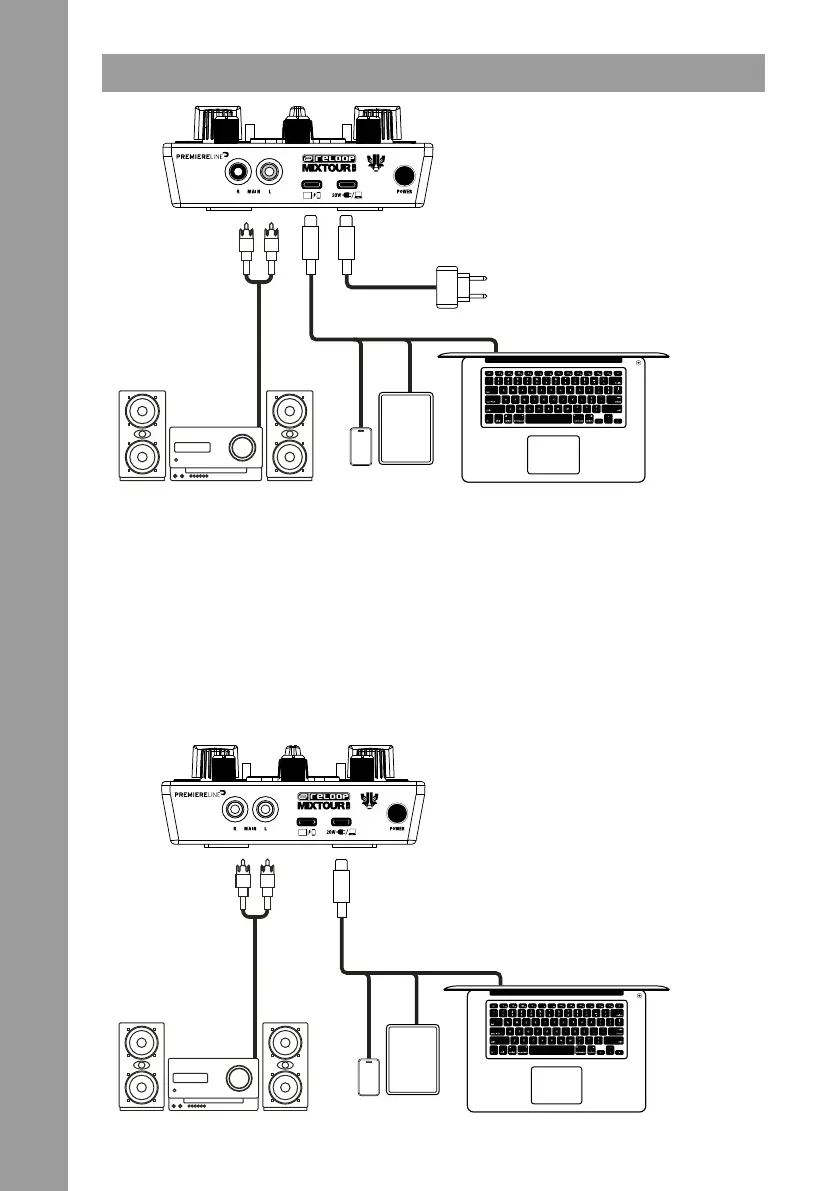 suciente alimentación) a través del puerto de carga USB-C. En el siguiente ejemplo, el Mixtour Pro está conectado a su