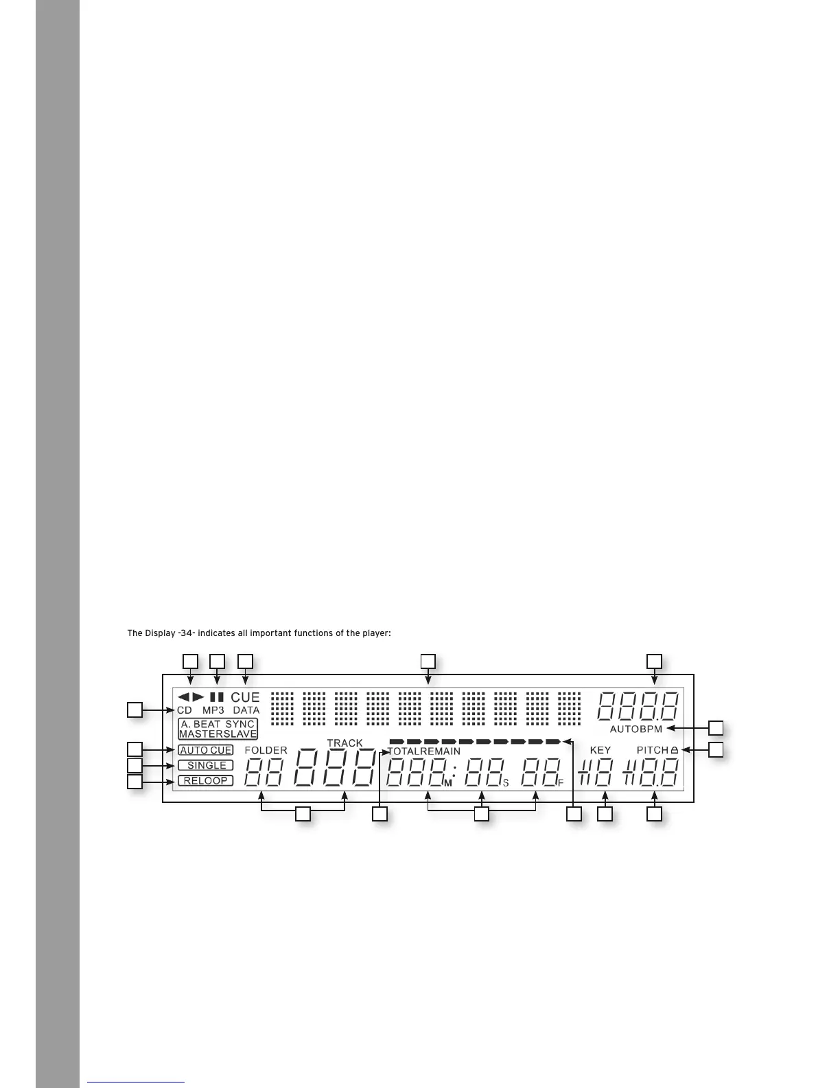 The Display -34- indicates all important functions of the player: