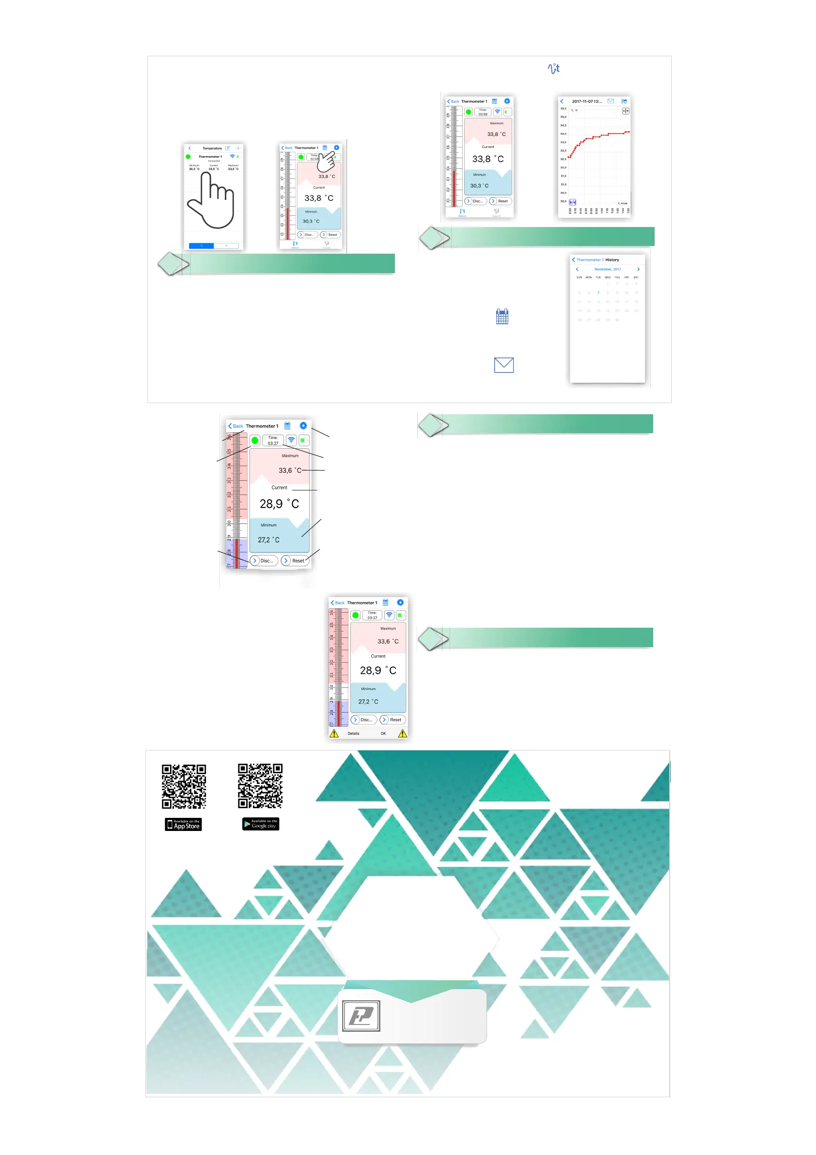 thermometers connected to the application; it displays the current temperature as well