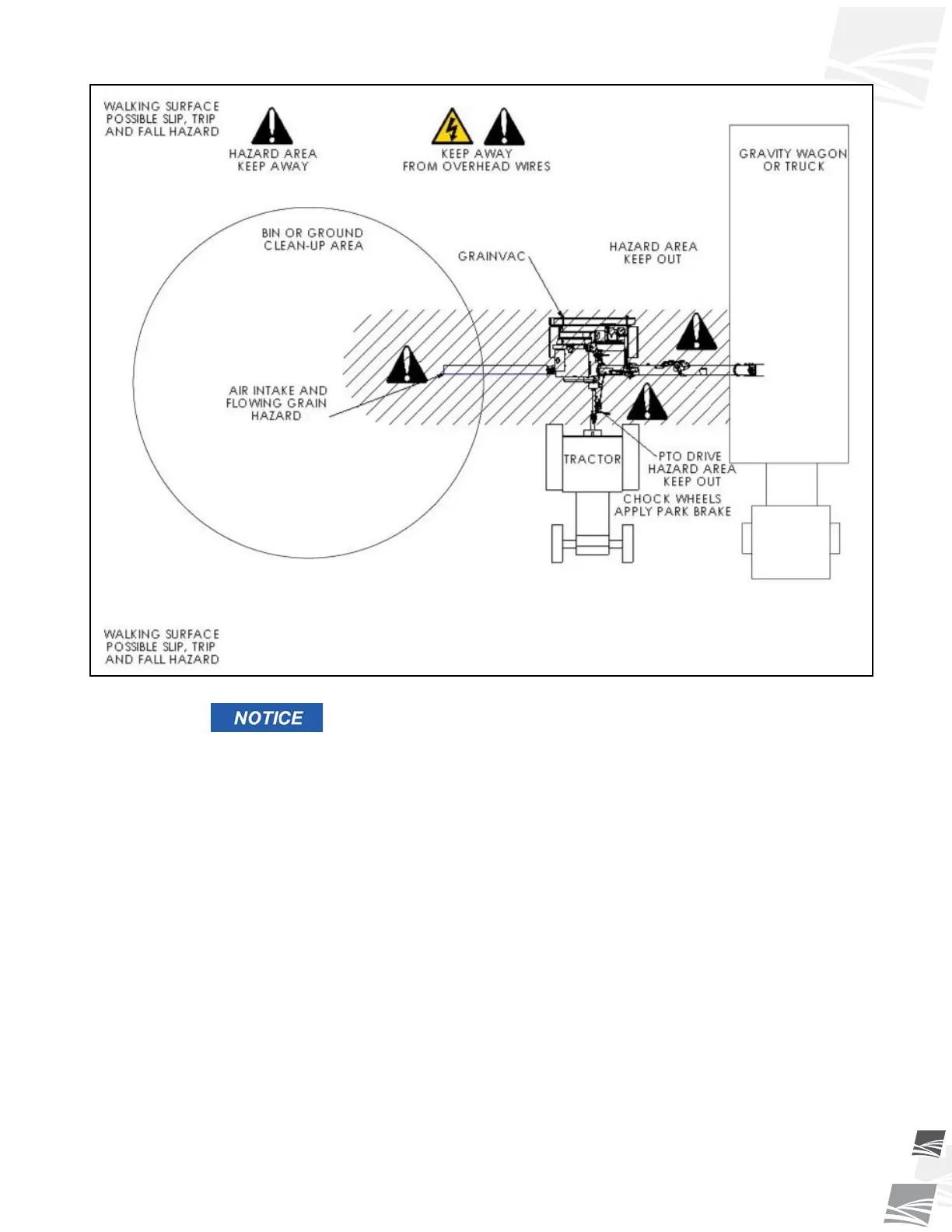 Note: The angle between the GrainVac and the tractor should be as small as possible. A small