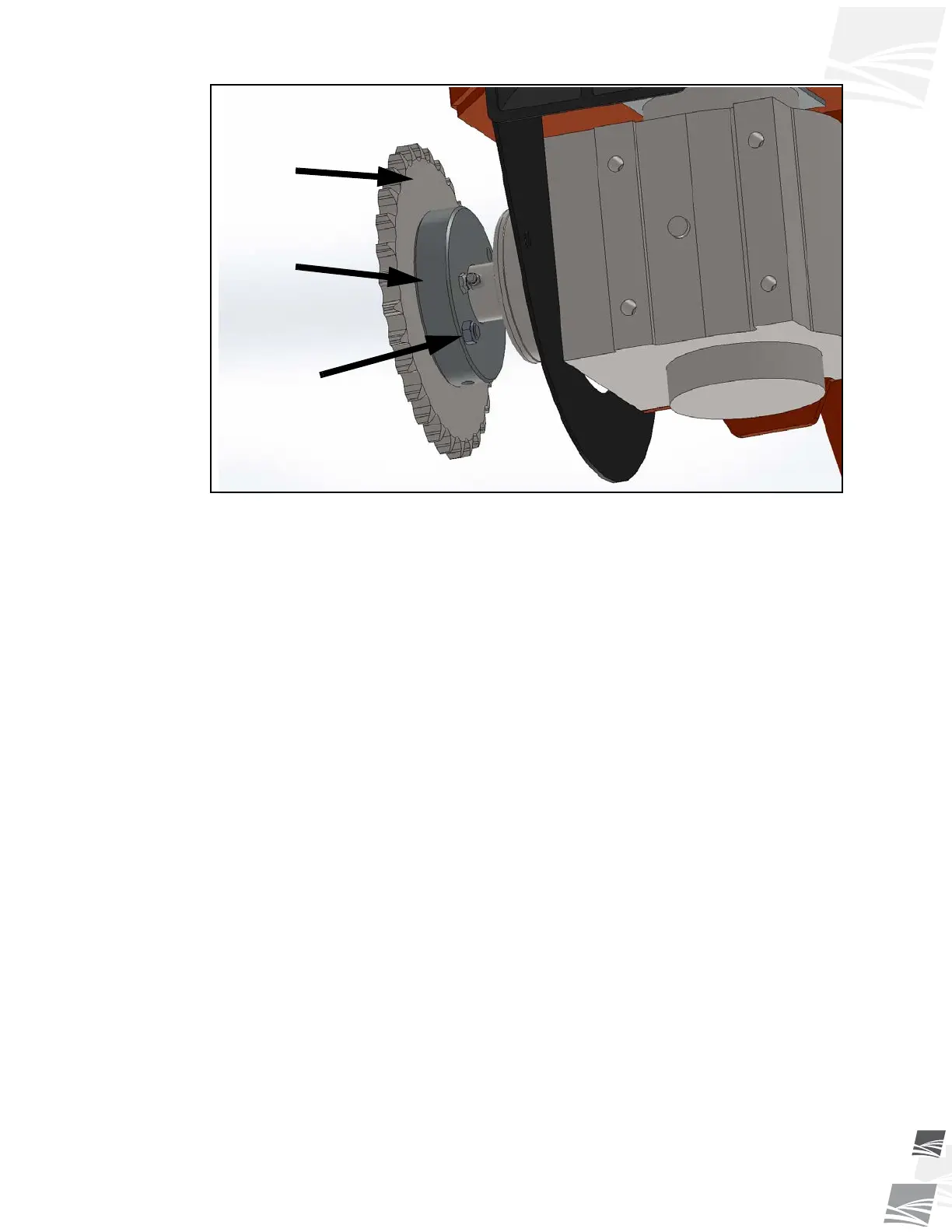 6. Rotate the PTO shaft by hand to align the sheared bolt in the sprocket plate with