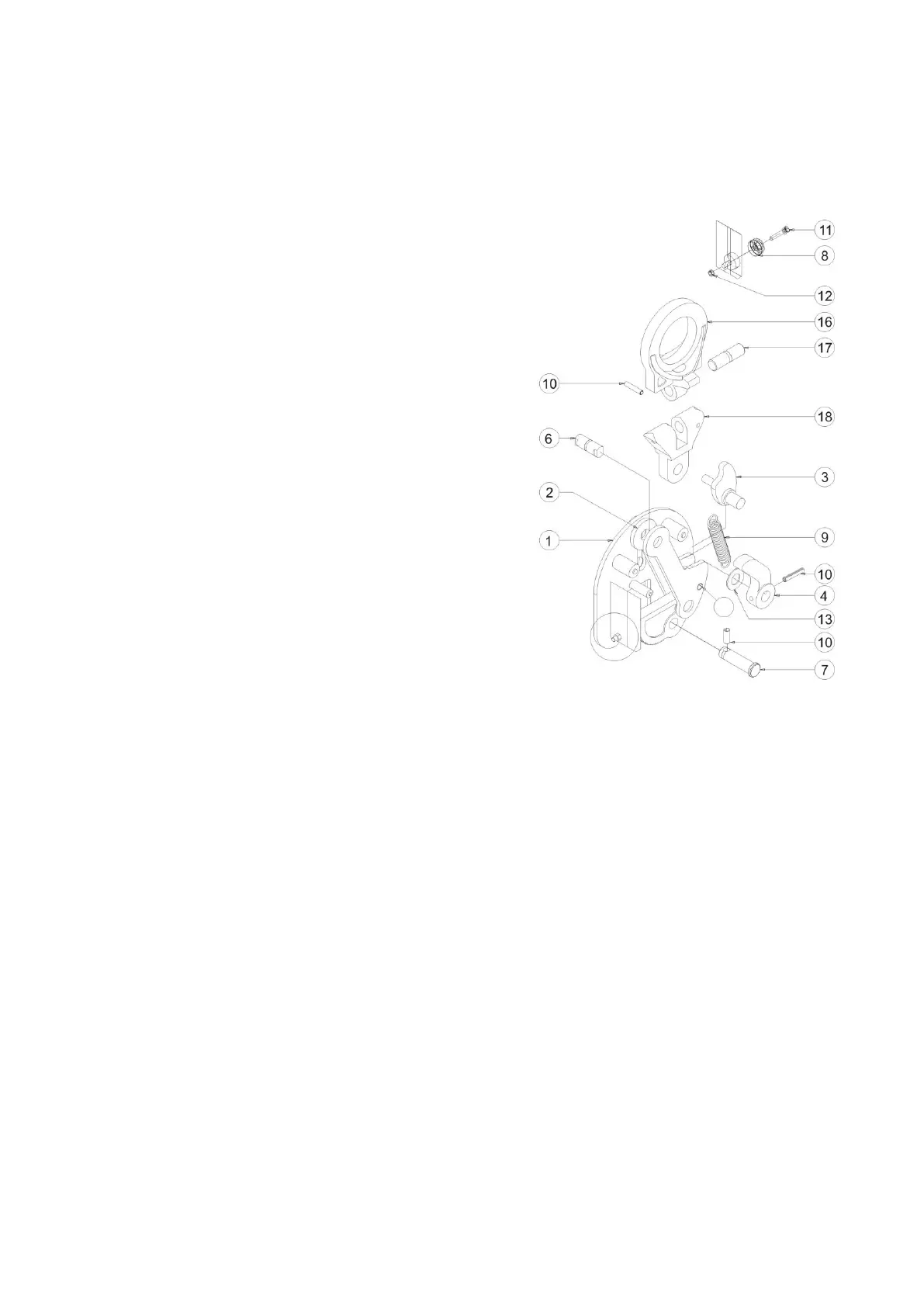 - Demonteer de spanstift (10) uit het koppelstuk (18) en verwijder de scharnierpen (17).