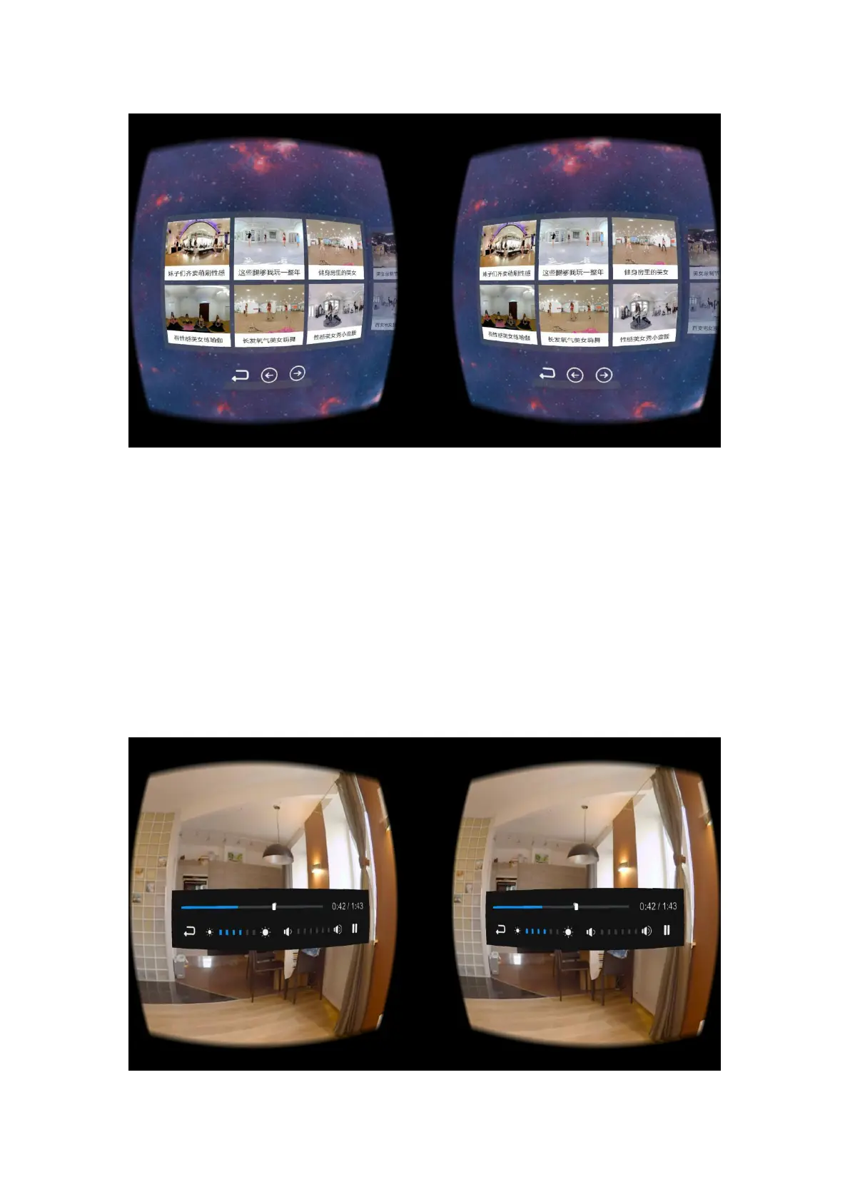 2. Downward the head visual angle on the play page can show the progress bar of play; Use